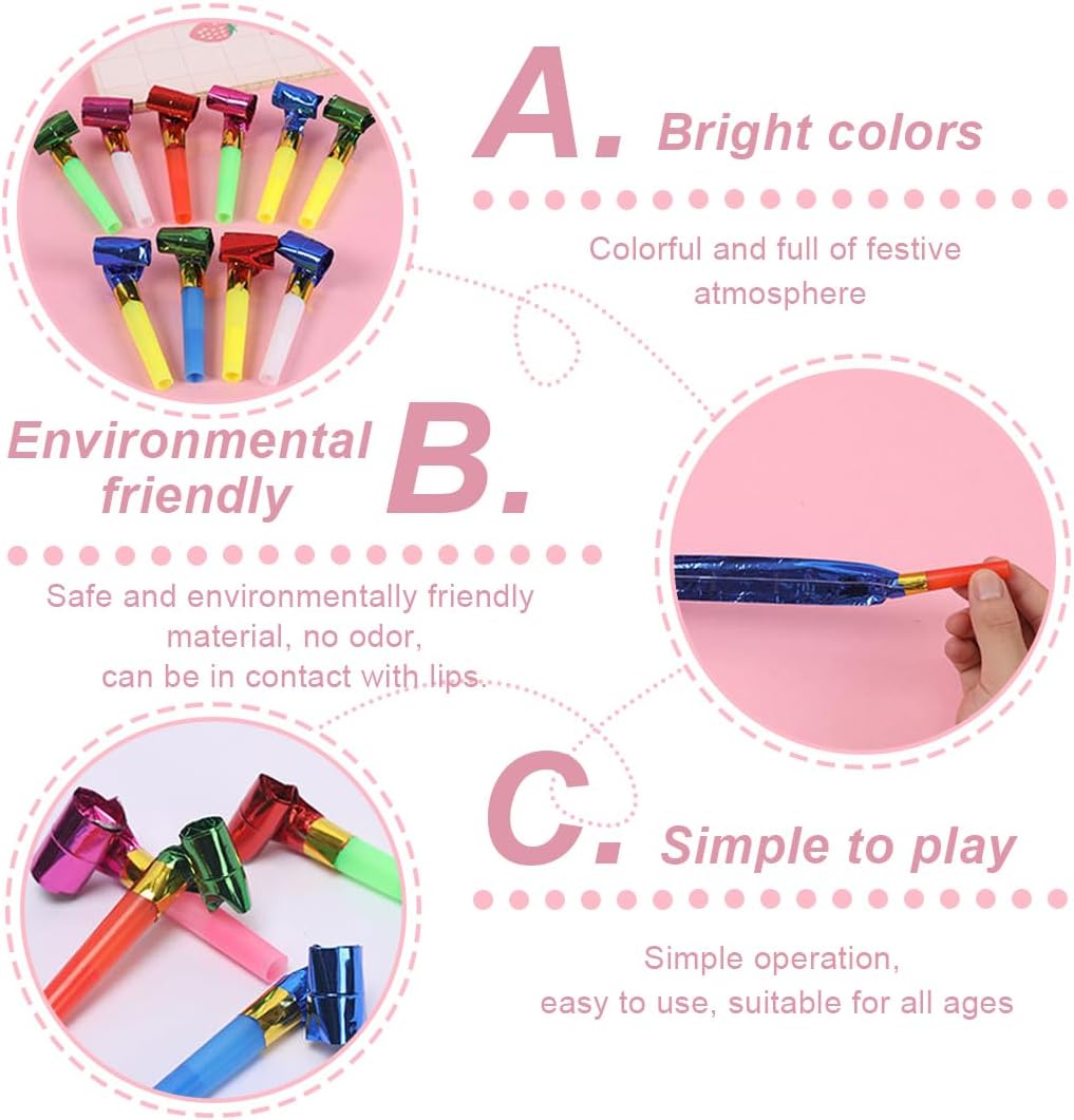 🔔 Value Pack: include 40 soffiatori di carta per feste (disponibili in diversi colori e stili). Abbastanza per garantire che ci siano sempre abbastanza soffiatori alla festa. 🔔 DIMENSIONE: Il nostro rumorista per feste è di dimensioni compatte, misura 3,3 pollici di lunghezza prima di soffiare e si allunga fino a 9,4 pollici di lunghezza quando soffia. 🔔 DIVERTENTE PARTY NOISEMAKER: i nostri spray per il benessere possono essere utilizzati sia dai bambini che dagli adulti. Potrete sempre suonare la festa con i vostri amici e guidare la musica come un fischietto da festa. 🔔 BUONA QUALITÀ: il soffiatore è resistente e riutilizzabile, la carta del rotolo si espande istantaneamente, rimbalza automaticamente quando non viene soffiata e l'estremità si allunga liberamente. 🔔 GARANZIA DOPO LA VENDITA: se avete domande, non esitate a contattarci! Ci impegneremo ad aiutarvi!