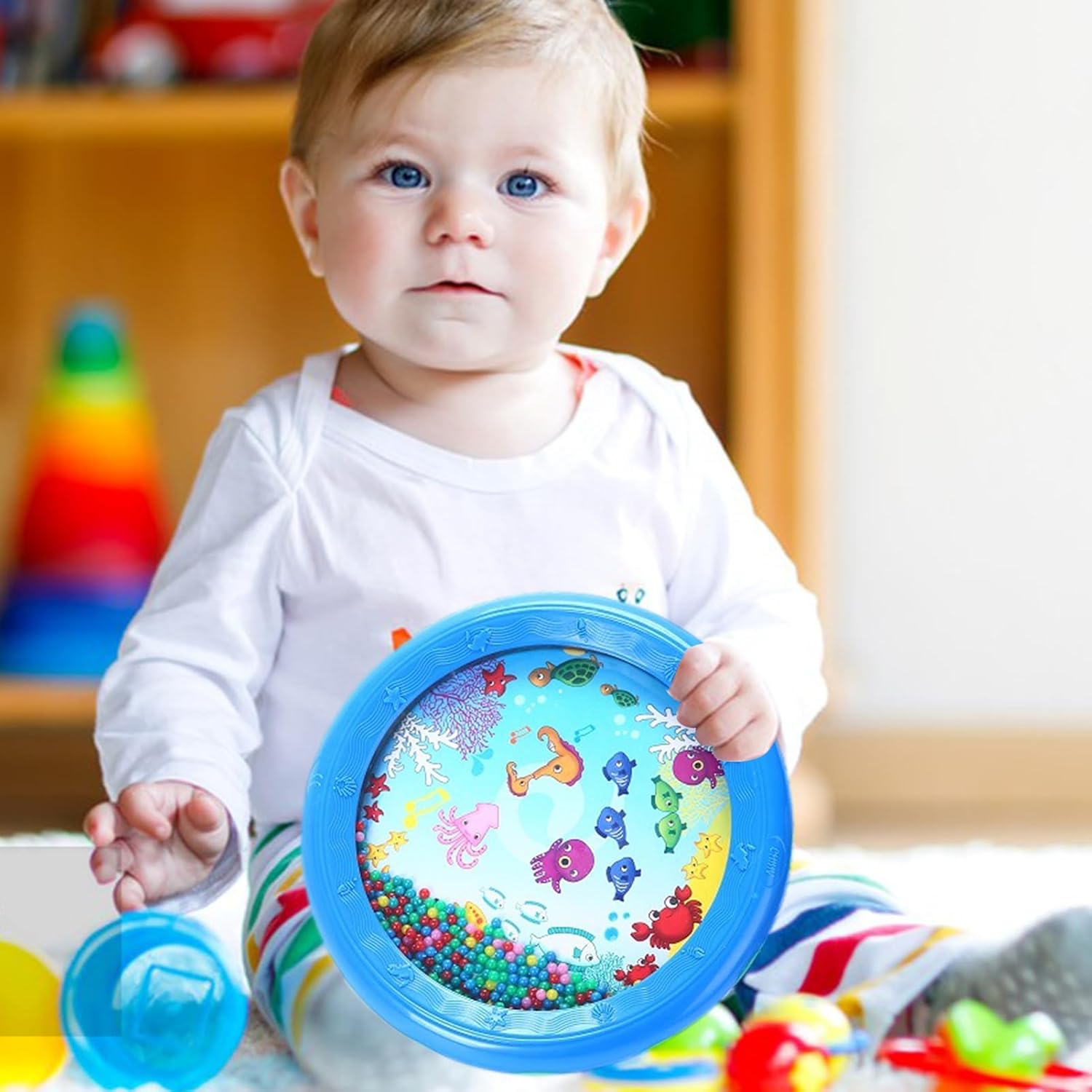 Materiale di alta qualità: il design rotondo con superfici lisce garantisce sicurezza, mentre i materiali di alta qualità lo rendono sopportabile. Con un bel suono calmante che imita il suono delle onde del mare, questo tamburo marino è leggero e facile da controllare per i bambini. Soothe and Relax: Il nostro tamburo marino immerge i bambini in rilassanti simulazioni marine. I modelli del tamburo creano una scena marina, che forniscono stimolazione sensoriale e migliorano le capacità di elaborazione uditiva. Sfondo a tema marino: esplora le meraviglie del marine con il nostro tamburo marino educativo e divertente. Con uno sfondo vivace e colorato a tema marino, è coinvolgere ragazzi e ragazze per ore di divertimento. Ispira la curiosità: incoraggia l'amore per l'apprendimento e l'esplorazione di tuo figlio con questo tamburo di mare. esplorano il mondo di colori, suoni e movimenti attraverso le incantevoli perle colorate. Presente commovente: scatena l'immaginazione di tuo figlio e migliora il suo musicista interiore con i suoni unici di questo tamburo marino. Un grande regalo per i bambini, perfetto per compleanni o Natale, per incoraggiare la creatività e sviluppare le loro abilità musicali.