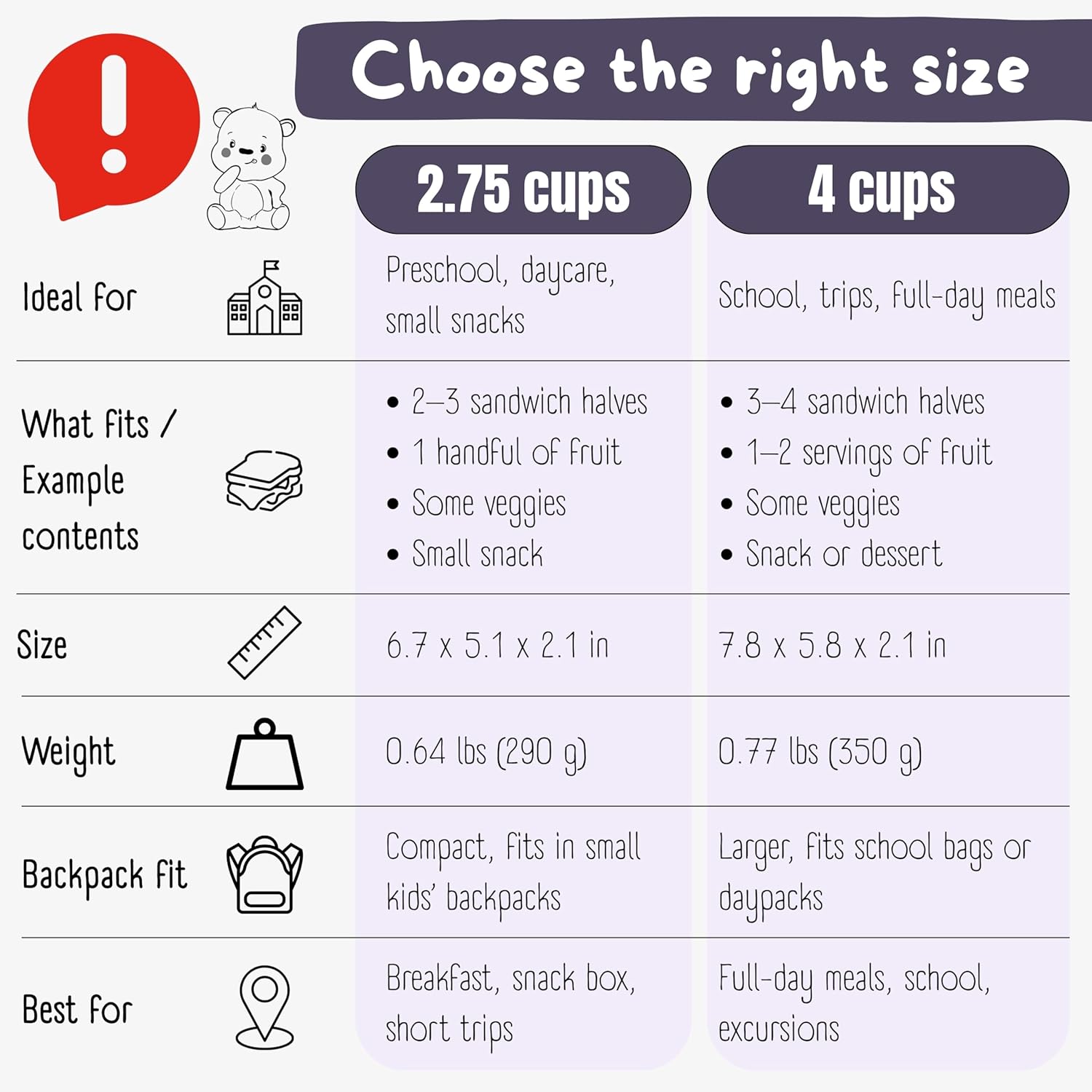 | Componenti incluse | Contenitore per il pranzo |