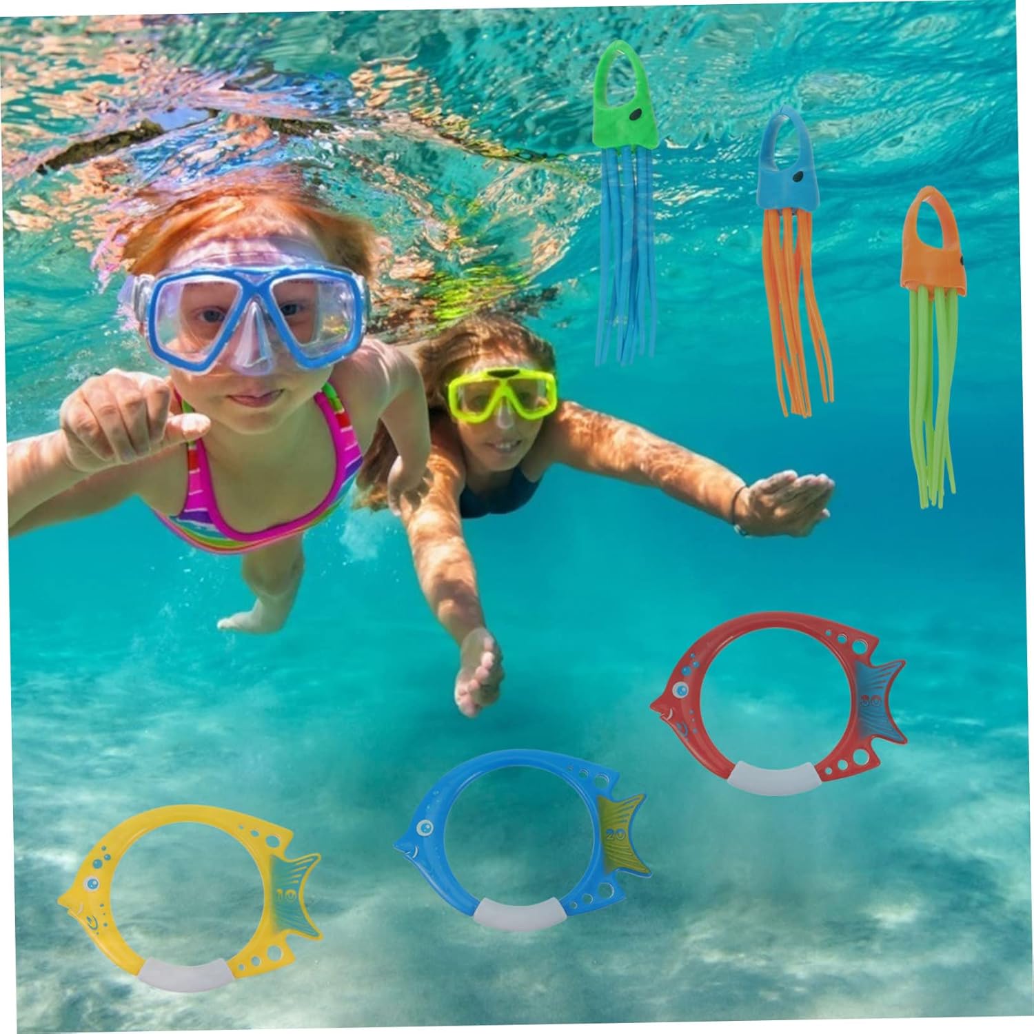 Giocattoli da : giocattoli colorati affondano in colori vivaci realizzati in plastica ad densità, giocattoli da immersione in plastica Giocattoli per immersioni per : gli anelli per immersioni possono stare in posizione verticale sul fondo della piscina, così da essere facili da afferrare. giocattoli per immersioni all'aperto Giocattolo da per : buona resistenza all'acqua e all'invecchiamento, inoltre, non sbiadisce facilmente al sole o si danneggia, giocattoli da immersione Giocattolo da per : set giocattoli da piscina per immersioni subacquee è composto da 5 diversi tipi prevalenti giocattoli da immersione, giocattoli da immersione per Giocattoli subacquei per : gettare i giocattoli subacquei in piscina, aspettare affondino e seguirli!, giocattolo per per