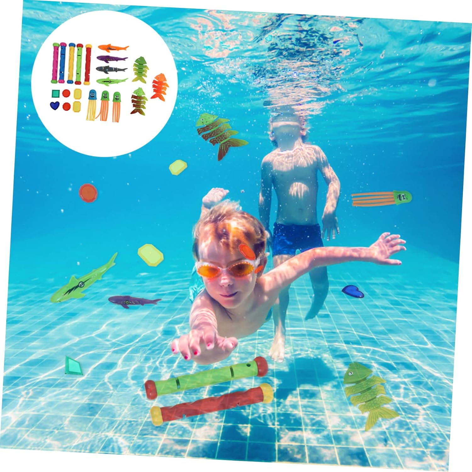Giocattoli da immersione: design speciale basato sul , set da immersione è appesantito, può affondare e stare sul fondo della piscina, da per Giocattoli subacquei per : include 6 gemme, 4 giocattoli, 3 giocattoli subacquei, 3 polpi subacquei, 5 bacchette subacquee, in totale 21 , giocattoli subacquei per Da per : set giocattoli da immersione aumenta divertimento e con i tuoi , da per Per dei : un eccellente per migliorare tue abilità immersione e divertirti con i tuoi , giocattoli per immersioni estive Giocattoli subacquei per : giocattoli colorati affondano in colori vivaci sono realizzati in plastica ad densità, giocattoli subacquei per