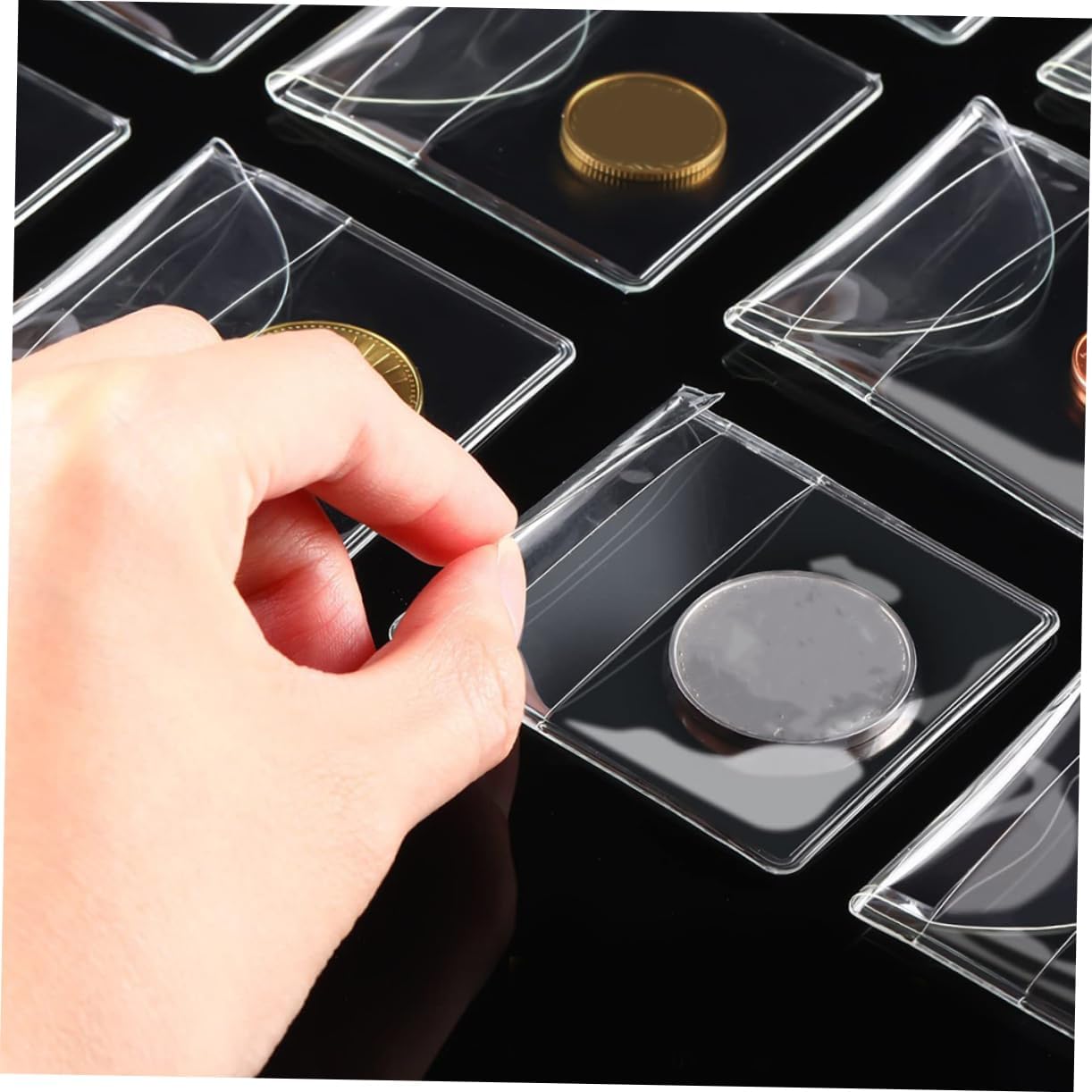 Elevata trasparenza: realizzate in materiale pvc ad trasparenza, queste custodie ti consentono visualizzare i dettagli dei tuoi oggetti da collezione senza rimuoverli, custodie per carte plastica, custodie in plastica per francobolli Resistenza alla polvere e all'umidità: queste custodie proteggono efficacemente tue monete da polvere e umidità, preservandone l'aspetto originale e prolungandone la durata, buste protettive per monete singole, lanci monete con tasca singola Conservazione organizzata: facili da inserire e rimuovere, queste custodie facilitano la conservazione e la gestione organizzate oggetti da collezione, custodie in plastica, medaglie Barriera protettiva: queste custodie offrono una protezione robusta contro polvere e umidità, preservando stato originale delle monete e prolungandone la , custodia trasparente, custodie per collezionisti Scudo protettivo: queste custodie offrono una robusta protezione contro polvere e umidità, aiutando a mantenere condizioni delle monete e a prolungarne la durata, custodia protettiva per monete singole, protezione singola per la conservazione dei gioielli