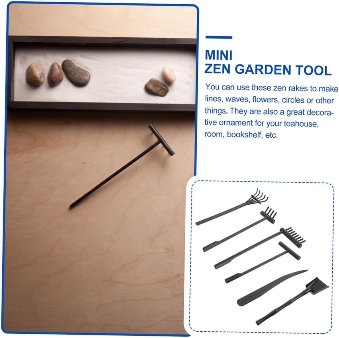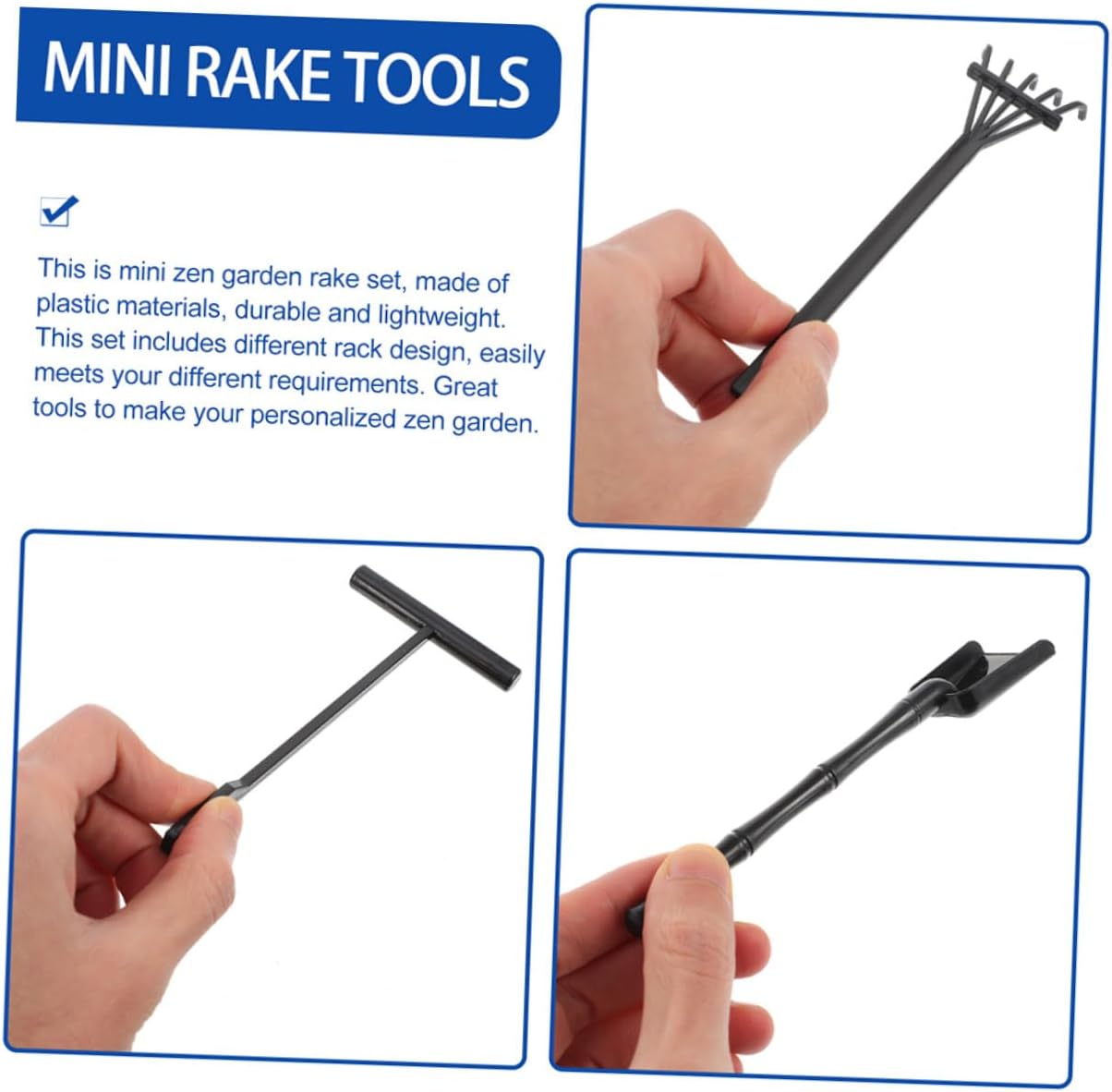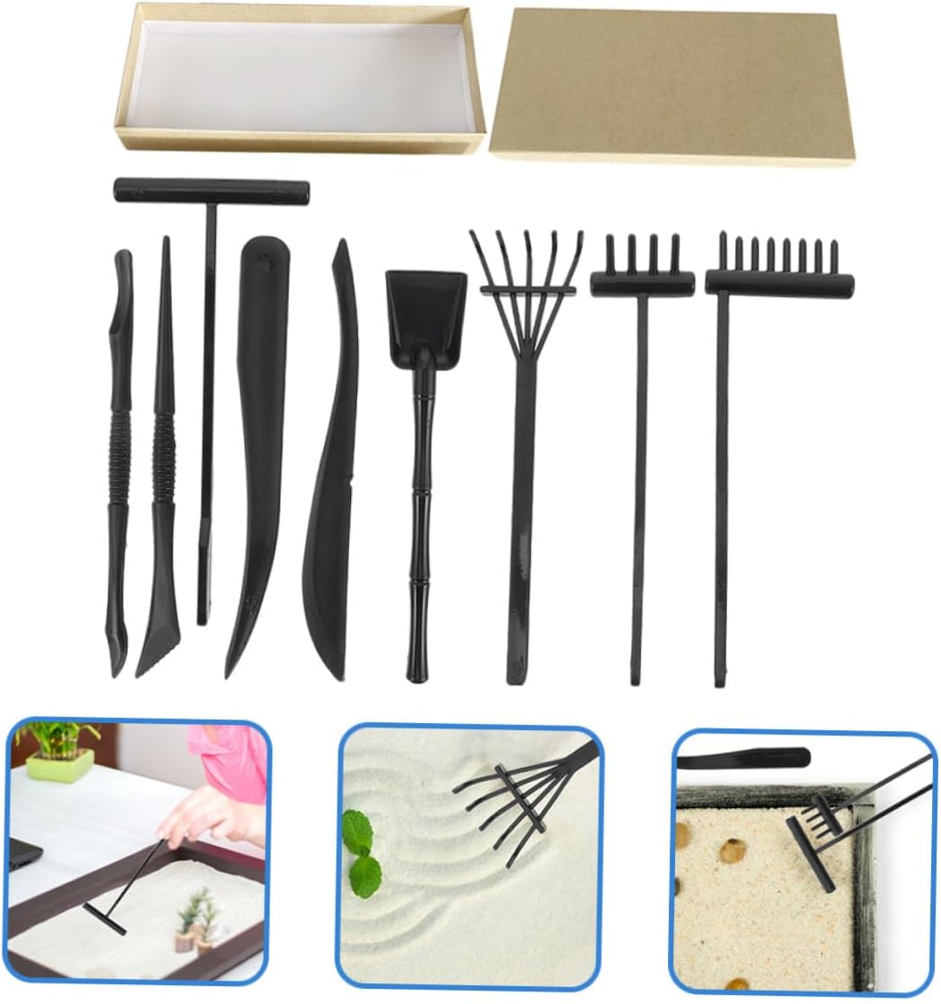 Mini attrezzo: in miniatura con rastrello in stili diversi, facilmente un meraviglioso e per mini giardino, mini attrezzi da giardinaggio Strumento meditativo: design ingegnoso, e delicato, gli accessori per giardino sabbia zen sono realizzati con cura, non puoi metterli giù, rastrello da tavolo per sabbia Mini accessorio: gli attrezzi da giardino zen sono piccole dimensioni e leggeri, non occupano in casa, da giardino in sabbia Accessori da giardino in miniatura: rastrello in miniatura è adatto e ottimo per accessori da mini casa e adatto a molti decori layout, piccolo rastrello da giardino Attrezzo da giardino da te: set da giardino zen ha e design diversi, ottimo per creare sabbia, accessorio da giardino con sabbia