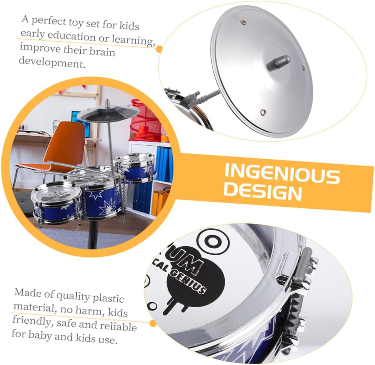 Strumenti per : è un set giocattoli divertenti ed educativi adatti a tutte età, strumenti musicali per Giocattoli musicali per : un set giocattoli perfetto per l'educazione o l'apprendimento precoce dei , per migliorare sviluppo del loro , giocattoli musicali Batteria per : sebbene abbia un design , è pratica quando viene utilizzata e può la musicalità dei , strumenti musicali per Musicale per : realizzato in materiale plastico, set batteria è realizzato in materiale plastico e può supportare l'uso a lungo termine dei , giocattoli musicali per batteria per Per : la coordinazione occhio-mano, l'udito e capacità tattili dei e loro musicale, per