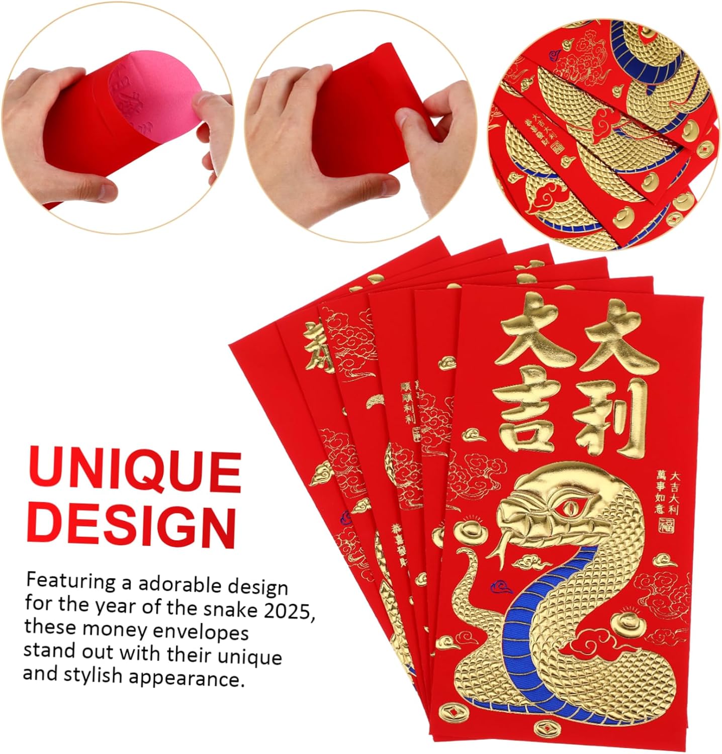 Confezione elegante: ogni pacchetto rosso è confezionato in una squisita confezione, che lo rende una scelta ideale per gli amici durante le feste, buste rosse cinesi a forma di serpente, buste rosse per il capodanno cinese Tema del serpente: celebra l'anno 2025 del serpente con queste buste rosse appositamente progettate, caratterizzate da elementi tradizionali, buste rosse cinesi, buste rosse con cinesi Imballaggio delicato: le buste per contanti sono fornite in una confezione dal design accattivante, che le rende pronte per essere regalate senza bisogno di ulteriore imballaggio, busta per il capodanno cinese, busta rossa per l'anno del serpente Design unico: caratterizzate da un adorabile design per l'anno del serpente 2025, queste buste porta soldi distinguono per il loro aspetto unico ed elegante, busta rossa con cinesi fortunate, busta con cinesi fortunate Ampio spazio: progettate per contenere più banconote e , queste buste portafortuna ti assicurano di poter fare un , pacchetto rosso cinese, serpente hong bao