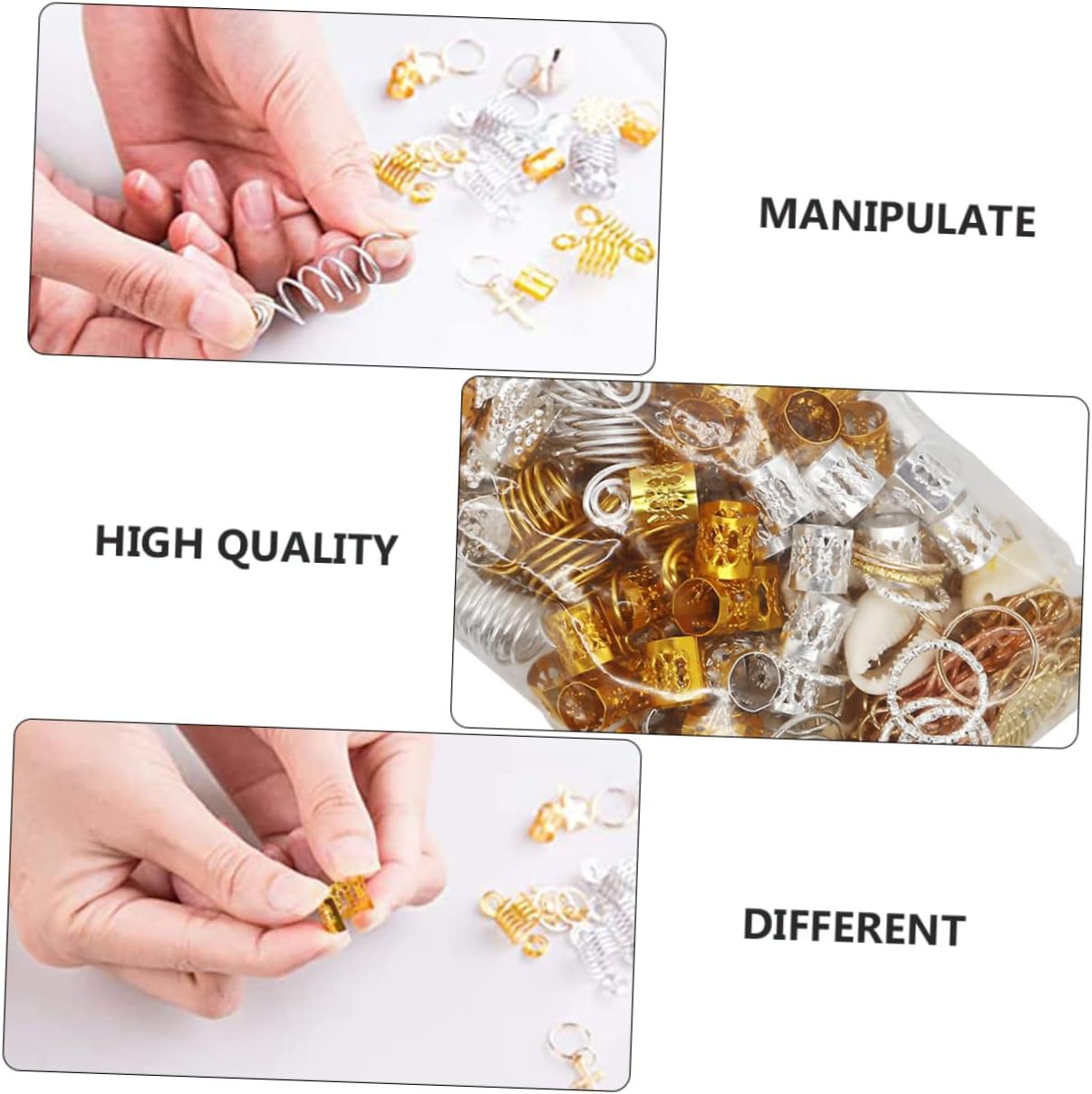 Polsini con dreadlocks - Sono disponibili 18 forme diverse, inclusi 180 anelli per trecce per capelli e 20 perline di legno verniciate naturali, il set comprende anche 200 cordoncini metallici (100 oro e 100 argento) e accessori per trecce per capelli. Facile da usare: non sono necessari strumenti per l'installazione. Tutto quello che devi fare è intrecciare i capelli e aprire l'anello per posizionarlo dove vuoi. Tubo per capelli fai-da-te, trecce per capelli con perline Anelli per capelli - le perline regolabili dei dreadlocks sono facili da usare, puoi regolare il grado di tenuta in base alle tue esigenze, i dreadlocks intrecciano i tubi per capelli con perline - ci sono tutti i tipi di forme, anelli semplici e altri modelli diversi, sufficienti per soddisfare le tue esigenze, polsini per capelli anello per dreadlocks - tiene i capelli umani molto stretti dopo averli pizzicati e non scivola quando si indossano le perline dei dreadlocks non così facili