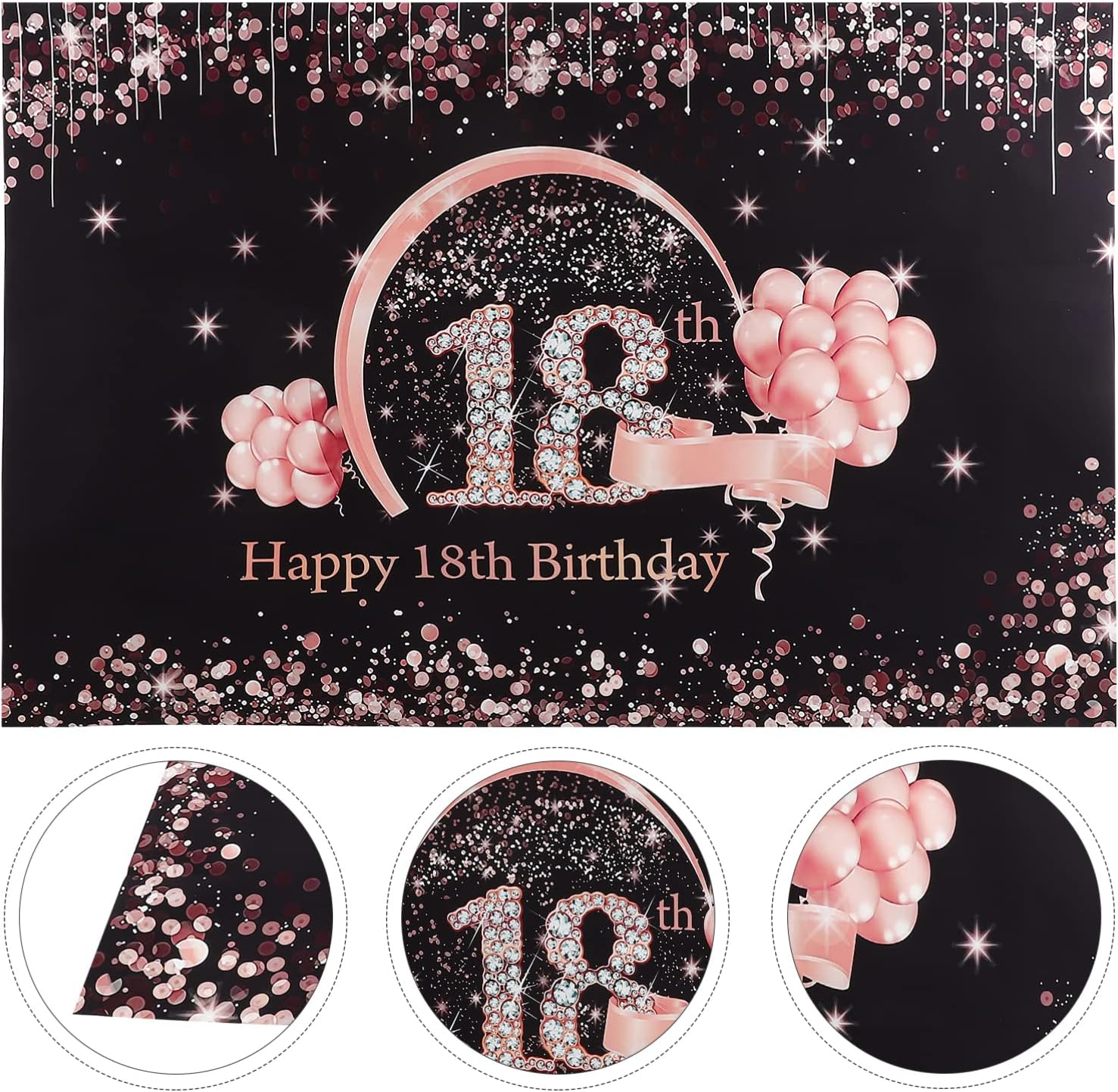 Ottieni --- Decorazioni per lo sfondo del 18° compleanno da 120x80 cm appositamente progettate per le ragazze di 18 anni sono sufficienti per essere le decorazioni della tua festa di compleanno, il tuo sfondo fotografico per aggiungere un'atmosfera di compleanno alla tua festa. non proprio scintillante, solo l'effetto dello sfondo del poster. DESIGN SQUISITO - Il design elegante in oro rosa rosa, il grande numero di 18 elementi di diamanti lucenti, gli squisiti elementi di paillettes con diamanti spezzati aggiungeranno più brillantezza alla tua festa, regalandoti una dolce e meravigliosa festa di compleanno a tema di 18 anni. Ampio utilizzo: molto adatto per decorare la tua festa a tema per il 18° compleanno. può essere utilizzato su porte, balconi, pareti, finestre, recinzioni di cortili, rami e altre aree esterne interne per decorare la festa. Allo stesso tempo è anche un vero e proprio supporto fotografico e uno sfondo fotografico. Materiale in poliestere --- Poliestere, con stampa trasparente, facile da trasportare, non facile da strappare, riutilizzabile. Nuovi e vivaci motivi di palloncini sul banner di sfondo rendono la festa più divertente. Ampiamente usato --- può essere compleanni interni/esterni, feste di vacanza, oggetti di scena fotografici! puoi metterlo sul muro, sul portico, sul giardino, sul camino o sul cancello o ovunque tu voglia decorare la casa!