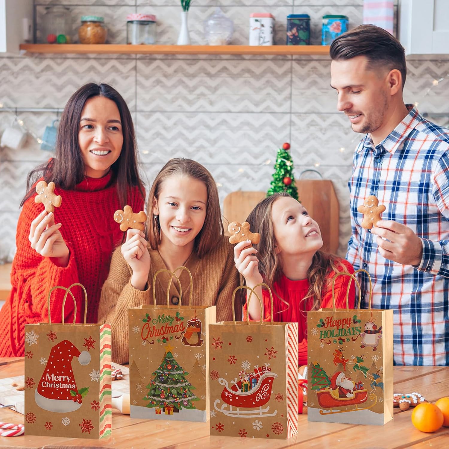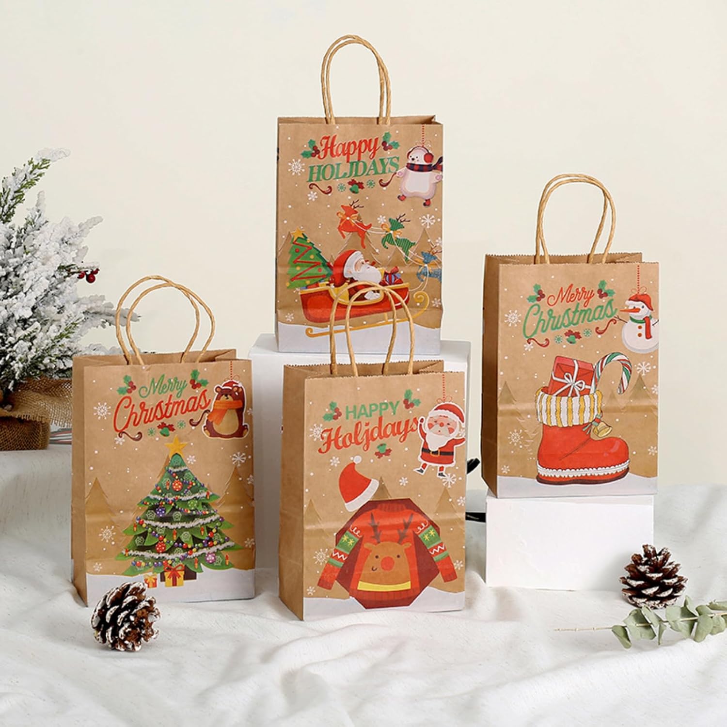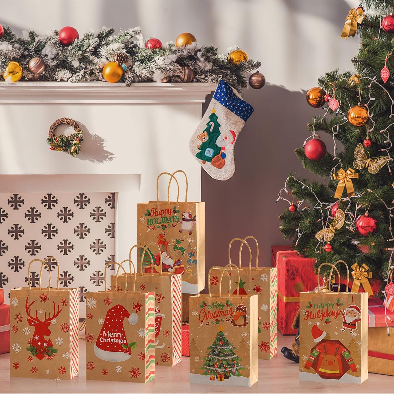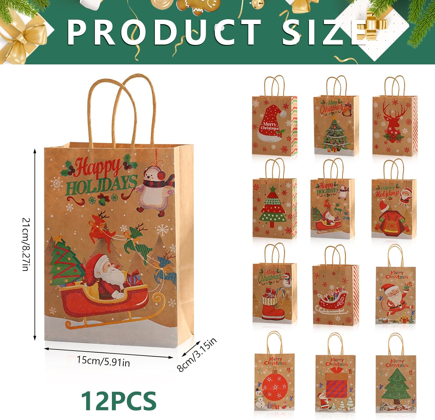 🎅【Riceverai】Il set contiene 12 sacchetti regalo di Natale realizzati in carta kraft con motivi diversi. I sacchetti regalo natalizi in carta sono dotati di robuste maniglie per un facile trasporto. Questi sacchetti di carta natalizi dagli stili ricchi possono soddisfare le tue esigenze di regali di Natale. 🎅 【Materia robusta】 I nostri sacchetti regalo di carta kraft natalizi sono realizzati in robusta carta kraft, che è sicura, ecologica, riutilizzabile e più resistente di altri sacchetti di carta. Il fondo del sacchetto regalo natalizio è ispessito e può essere posizionato in posizione verticale con forte stabilità. 🎅 【Tema natalizio】 I sacchetti per feste natalizie Bekecidi sono stampati con 12 motivi come Babbo Natale, albero di Natale, calzini di Natale, pupazzo di neve, fiocchi di neve, ecc. Ideale per confezionare regali per la tua famiglia, insegnanti, amici, bambini 🎅 【Dimensione perfetta】 La dimensione di ogni sacchetto regalo di Natale è 21 x 15 x 8 cm. I sacchetti natalizi di carta kraft hanno abbastanza spazio per contenere una varietà di snack e regali come caramelle, biscotti, cioccolatini, giocattoli, guanti, ecc. 🎅【Multiuso】Questi colorati sacchetti natalizi di carta kraft possono essere abbinati a qualsiasi festa di Natale per aiutarti a creare un'atmosfera festosa più forte