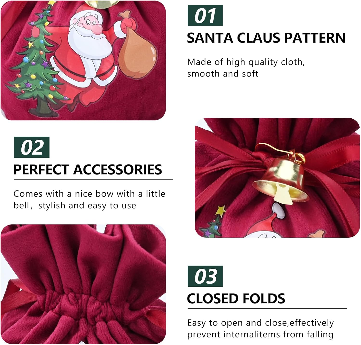 【Materiale】 La borsa natalizia in velluto è realizzata in morbido velluto liscio di alta qualità, con campanelli e coulisse. Esecuzione squisita, alla moda, facile da usare e trasportare. 【Pacchetto incluso】 Riceverai 6 sacchetti natalizi con coulisse, la quantità è sufficiente per soddisfare le diverse esigenze quotidiane. Organizza facilmente i tuoi piccoli oggetti, ideali anche per confezionare regali di festa. 【Design artigianale】 Borsa natalizia in velluto con motivo Babbo Natale stampato sulla superficie, con coulisse, facile da aprire e chiudere, resistente e previene efficacemente la caduta del contenuto all'interno. 【Ampia applicazione】 Queste borse natalizie con coulisse in velluto sono adatte per caramelle nuziali, gioielli, spiccioli, bigiotteria, braccialetti, gioielli, conchiglie e altri piccoli oggetti. 【Adatto a ogni occasione】 Perfetto per confezionare alcuni ricordi come regali per gli amici a Natale, matrimoni, anniversari, compleanni, San Valentino e altre occasioni. Adatto anche per l'uso quotidiano, per riporre alcuni oggetti personali.