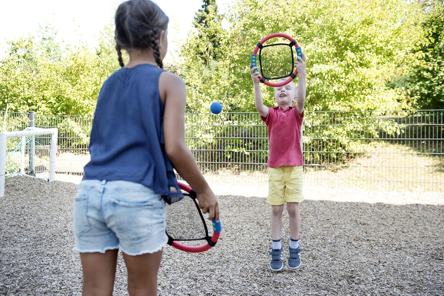 Due trampolini a mano – 3 palline incluse Morbidi manici e palline Utilizzabile per interni ed esterni A prova di asilo Facile da utilizzare Ottimo prodotto Prodotto realizzato con cura e precisione
