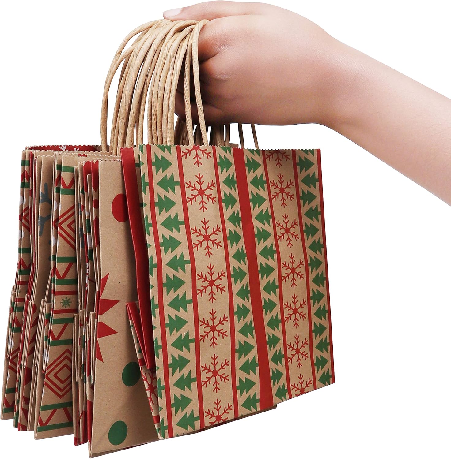 SET DA 24: Questa confezione contiene 24 sacchetti di carta kraft per calendario dell'Avvento adatti a tutte le tue esigenze. Tutti i sacchetti dell'Avvento da riempire sono lunghi 22 cm, larghi 9 cm e hanno un'altezza di 18,5 cm. I nostri sacchetti natalizi sono realizzati in carta kraft di alta qualità e sono ideali per confezionare regali per le festività natalizie. DESIGN DI QUALITÀ: I nostri 24 sacchetti di carta kraft colorati marroni contengono diversi motivi e illustrazioni sui lati. I motivi includono fiocchi di neve, stelle, alberi di Natale e palline. I colori inclusi sono rosso, verde, bianco e altri. DUREVOLI E ROBUSTI: i nostri 24 sacchetti di carta kraft per calendario dell'Avvento sono progettati per essere resistenti e robusti e per durare il più a lungo possibile. Sono realizzati in carta kraft di alta qualità e dureranno a lungo anche con un uso frequente. Naturalmente potete anche dipingere i 24 sacchetti di carta kraft con colori e pennarelli. Lascia correre la tua creatività! MULTIUSO: I nostri sacchetti di carta kraft sono adatti a molte situazioni. Puoi usarli per lavoretti fai-da-te per un calendario dell'Avvento fatto in casa o per confezionare regali di Natale, compleanno o matrimonio. Sono anche il regalo ideale per amici e parenti durante le festività natalizie. Grandi aiutanti quotidiani: i nostri prodotti sono costruiti in modo funzionale e combinano funzionalità e stile. Grazie al nostro design accurato, sono costantemente affidabili e pratici quando necessario, ideali per ogni occasione.