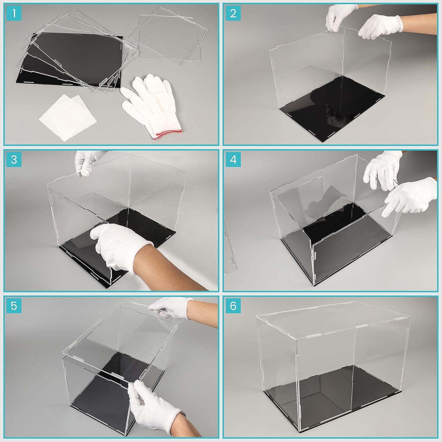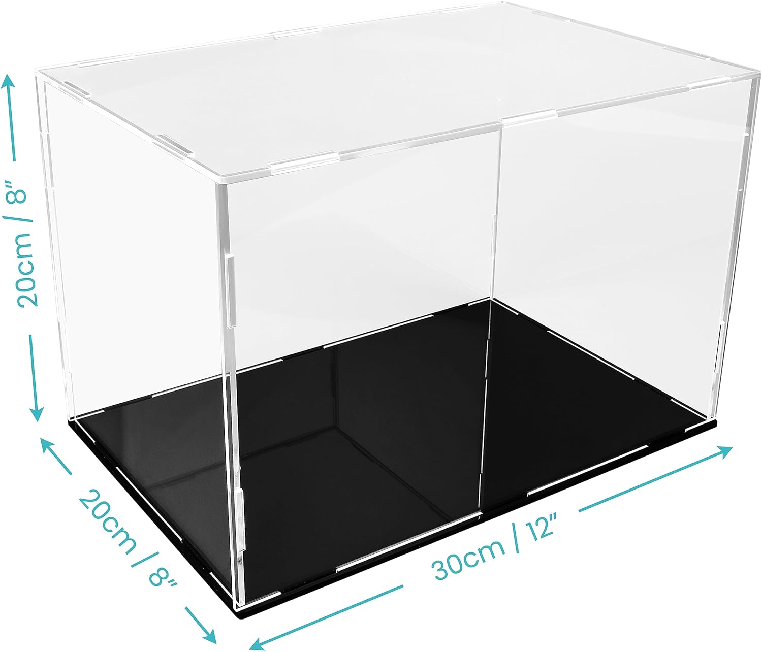 Espositore in acrilico: evidenzia e proteggi i tuoi oggetti più preziosi utilizzando questa vetrina in acrilico trasparente. La scatola misura 30 x 20 x 20 cm. Materiale durevole: la vetrina da parete della nostra collezione è realizzata in acrilico trasparente di alta qualità. Puoi visualizzare i tuoi oggetti da qualsiasi angolazione. Ha una base nera lucida ed è resistente ai graffi. Facile da montare: la pellicola protettiva su ciascun lato dell'acrilico deve essere rimossa prima del montaggio. Puoi utilizzare i guanti usa e getta per garantire che l'acrilico rimanga pulito. Utilizzo versatile: utilizza il rettangolo trasparente per esporre figurine, giocattoli, bambole e action figure, cimeli sportivi, gioielli, oggetti d'antiquariato, miniature, statue, sculture, kit modello Completo: il nostro set include anche guanti e 2 panni per la pulizia in microfibra.