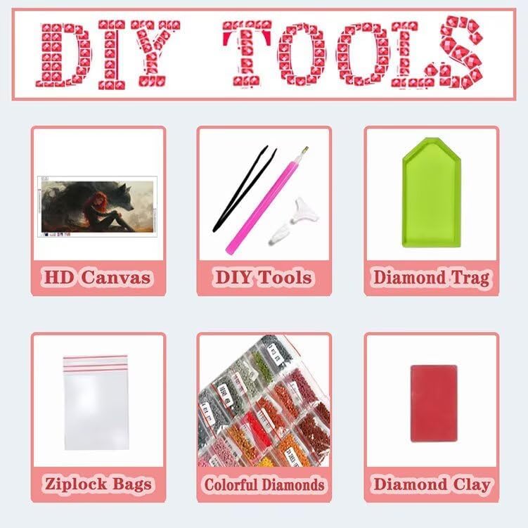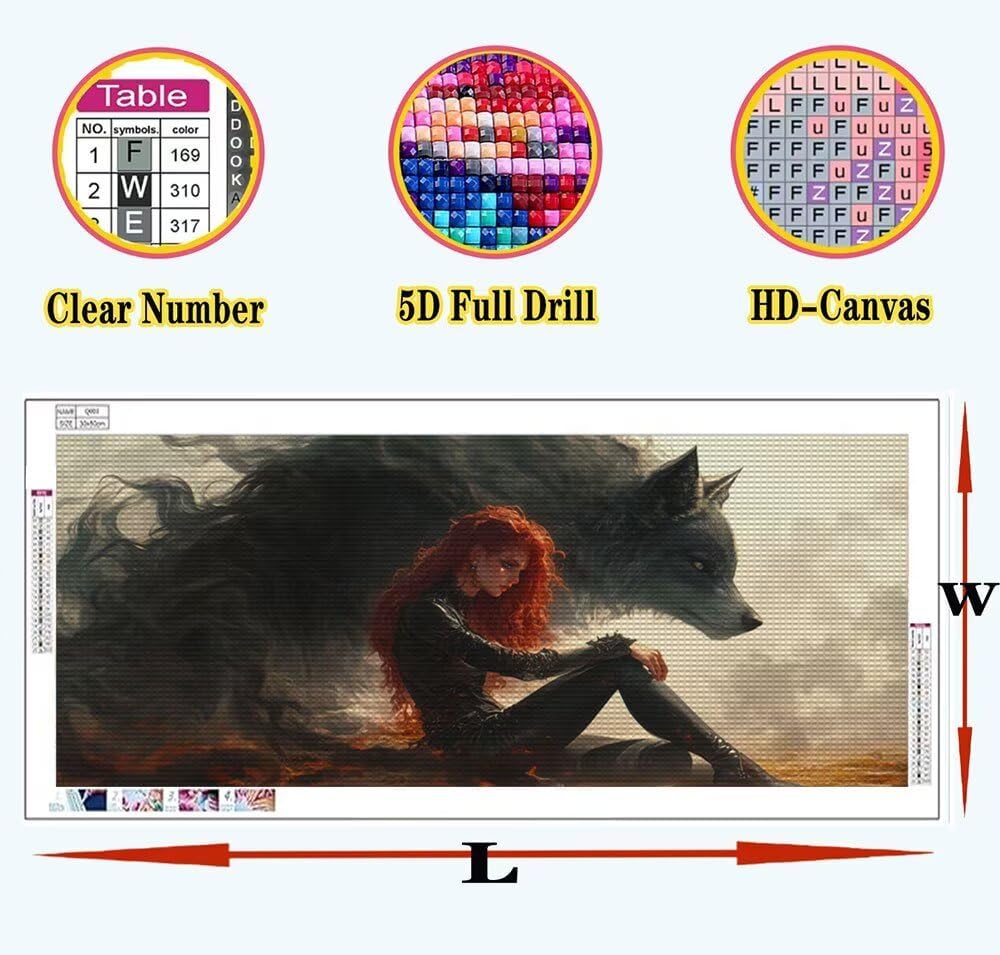 Bellezza Diamond Painting Kit Completo, Lupo Diamond Painting Bambina 80x160cm DIY Full Drill Crystal Art , 5D Bambini Per Pittura Diamante Adulti Principianti Per Pittura Diamante Wall Decor A-U278