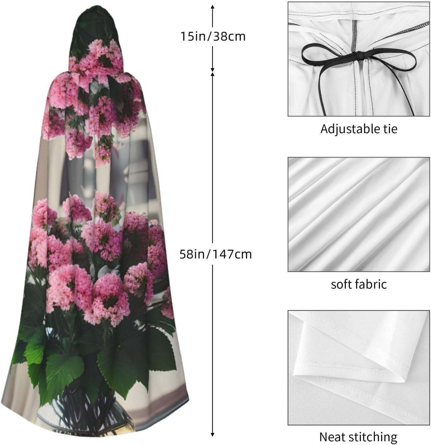 Entra nel mondo della fantasia e dell'avventura con il nostro elegante mantello da donna. Realizzato in fibra di poliestere di alta qualità, questo mantello offre una vestibilità leggera e confortevole, permettendoti di abbracciare i tuoi personaggi preferiti o personaggi per feste in costume, Halloween, fumetti e molto altro ancora. Dotato di un cappuccio oversize e una chiusura con cravatta, questo mantello non solo aggiunge un elemento di mistero, ma completa anche una vasta gamma di scelte di outfit La costruzione garantisce una lunga durata. Uso duraturo senza alcun fastidio o prurito. Che tu stia partecipando a una festa a tema, una danza o un evento cosplay, questo versatile mantello è sicuro di fare una dichiarazione. È perfetto per feste di Halloween, convegni di fumetti, spettacoli teatrali, feste in maschera e altre occasioni festive. Lascia che la tua creatività risplenda e immergiti nel mondo della fantasia. Pulire questo mantello è un gioco da ragazzi, Lavabile in lavatrice. Facile da pulire. Il suo design ti consente di godertelo per gli anni a venire, rendendolo una scelta affidabile ed elegante per tutte le tue esigenze di abbigliamento. Sperimenta l'incanto e il fascino del nostro elegante mantello da donna e diventa al centro dell'attenzione in ogni evento. Migliora il tuo gioco di costumi e crea ricordi indimenticabili con questo accessorio indispensabile. Abbraccia la tua immaginazione e intraprendi un viaggio straordinario oggi!