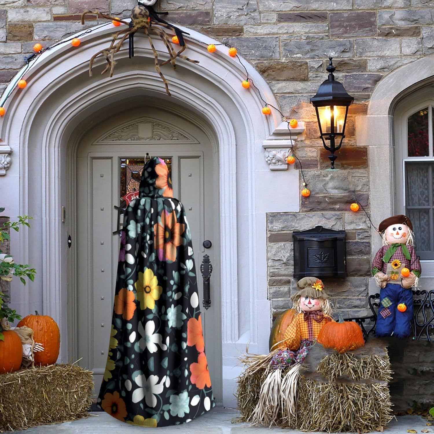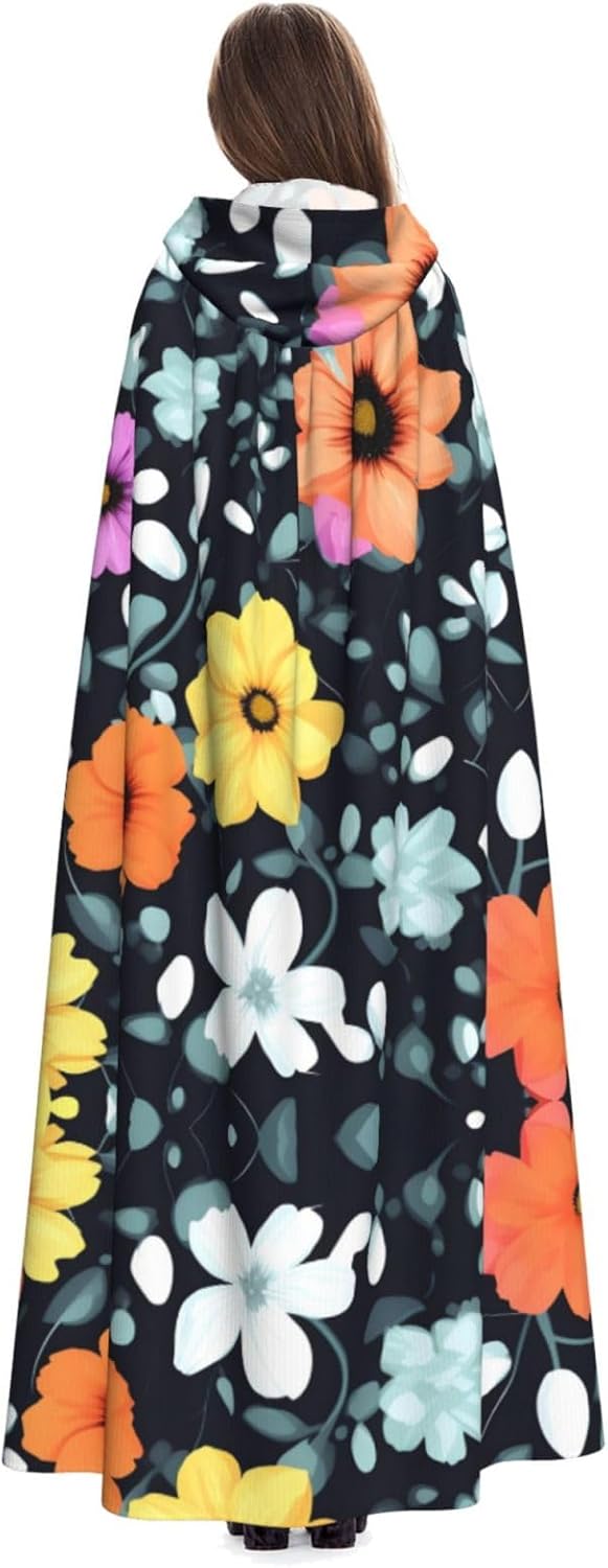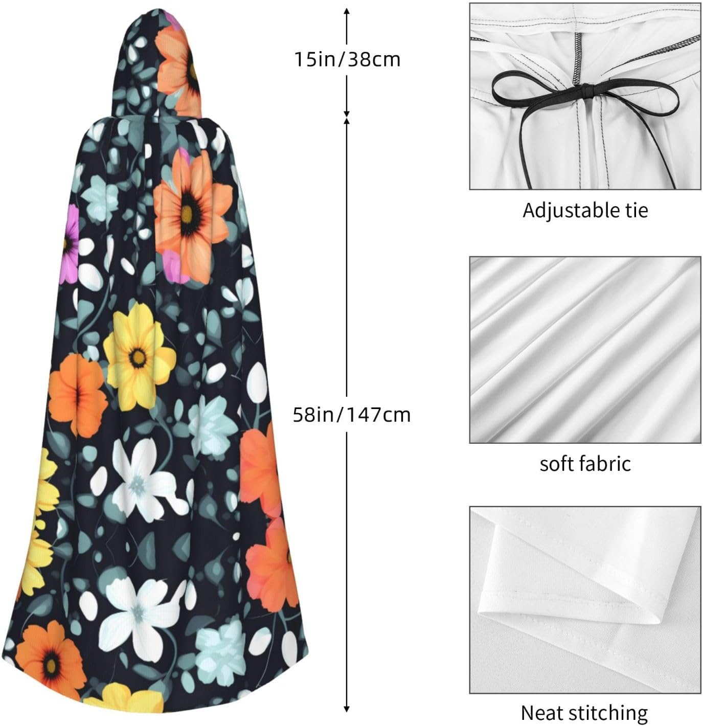 Bellissimo materiale e design con fiori colorati: il tessuto è realizzato in 100% fibra di poliestere (poliestere) tessuto di alta qualità, morbido e confortevole. Il design con cappuccio non è solo elegante e bello, ma fornisce anche calore extra alla testa e al collo. \r Caratteristiche del prodotto: il poncho oversize con cappuccio è un poncho con cappuccio senza lacci, senza cerniera, comodo realizzato in tessuto lungo, resistente e non prurito. \r Dimensioni del prodotto: il cappello misura 38,1 cm di altezza, 147,3 cm di lunghezza, 154 cm di larghezza. \r Adatto per occasioni: feste di Natale, feste di Halloween, feste in costume, celebrazioni pagane. Ideale per travestimenti, cosplay, costumi da scena, streghe, vampiri, royalty, scelta regalo perfetta per amici o familiari. \r Persone applicabili: adulti, unisex.