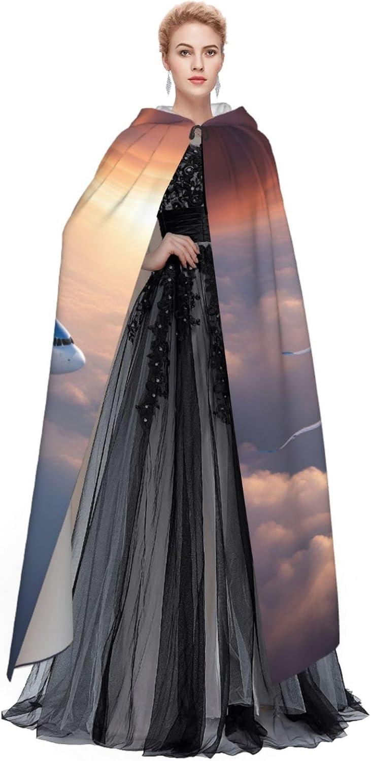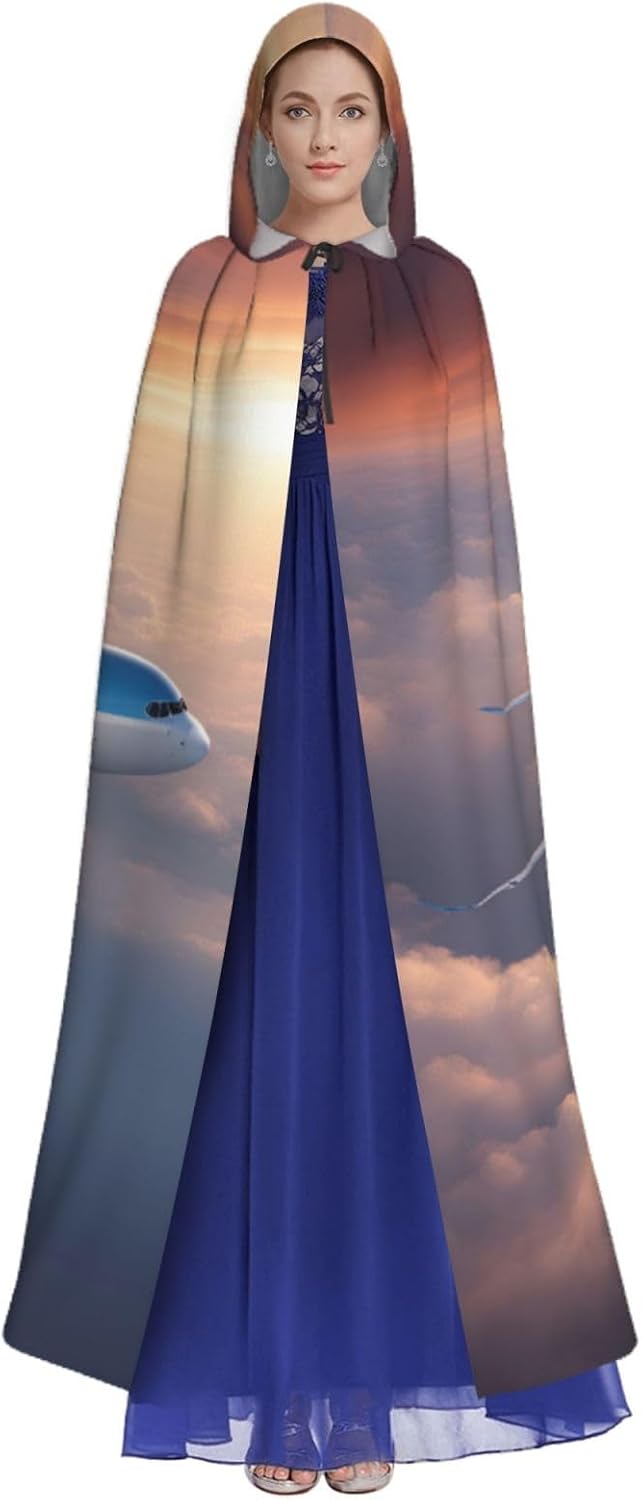 Bellissimo mantello con cappuccio con stampa aeroplano cielo con cappuccio un accattivante mantello con cappuccio per adulti per cosplay e Halloween