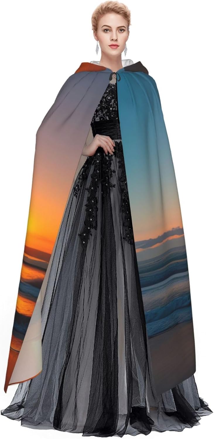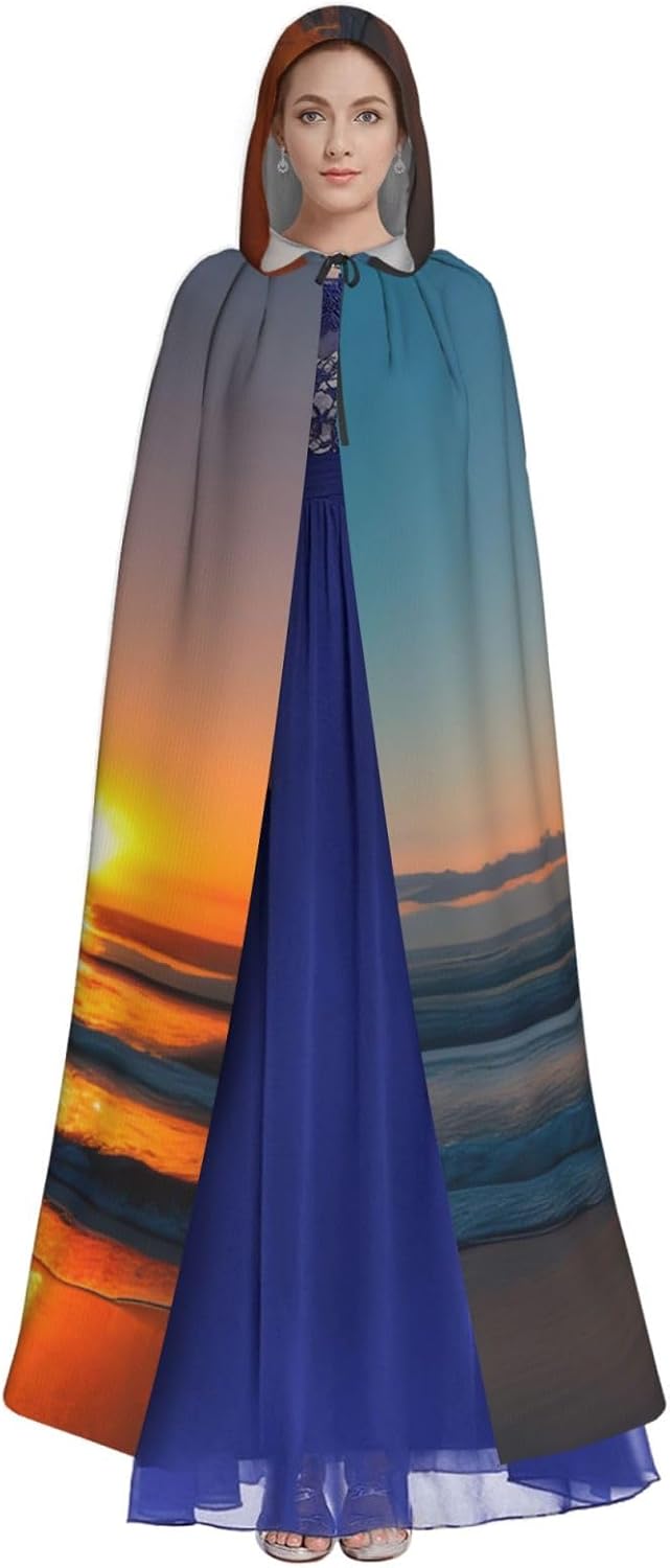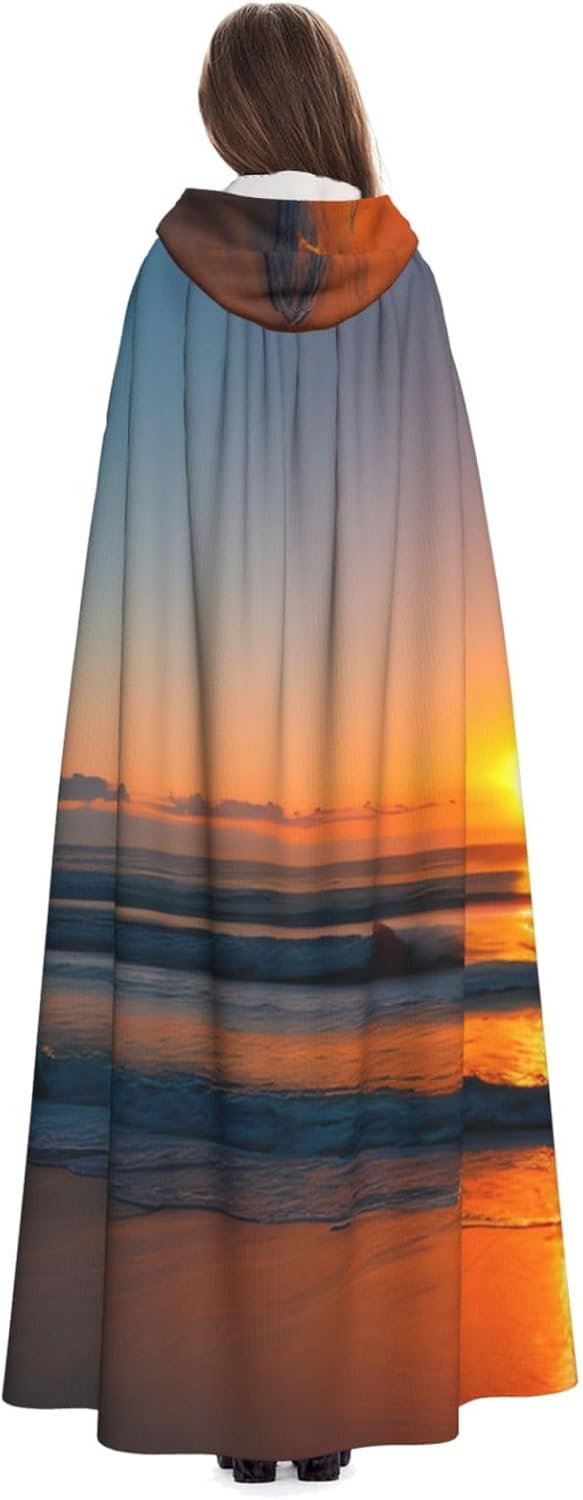 Bellissimo mantello con cappuccio con stampa di alba oceano per tutti i costumi cosplay unisex decorazione di Halloween forniture di carnevale