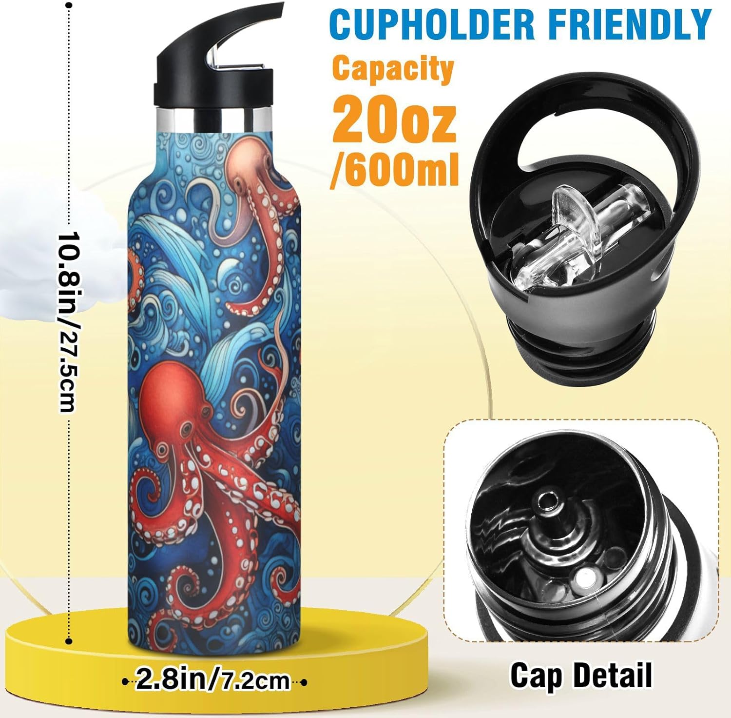 Bellissimo Polpo Astratto Blu Borraccia per Bambini in Acciaio Inossidabile Termica a Vuoto per Ragazzi e Ragazze (600 ml)