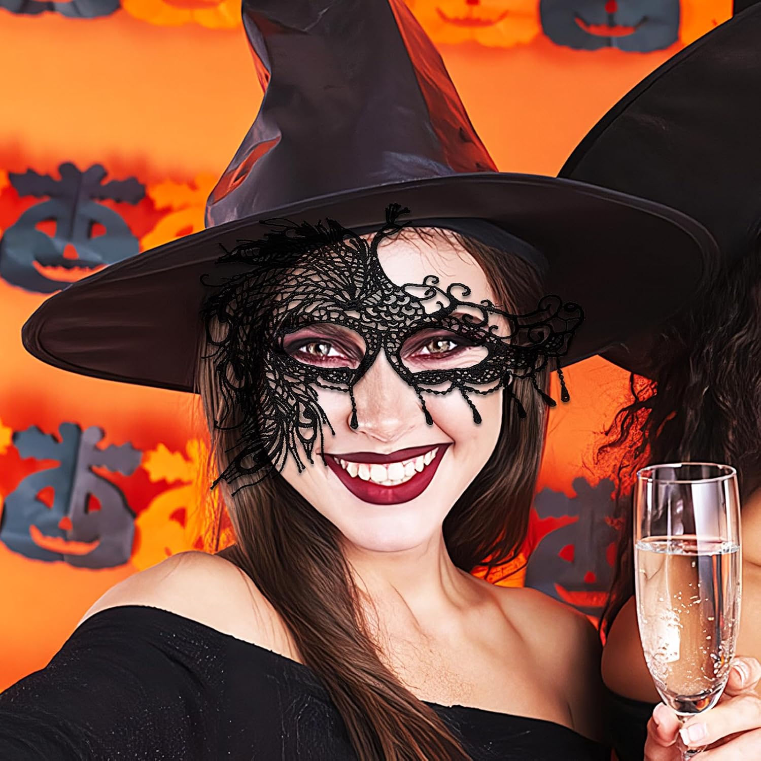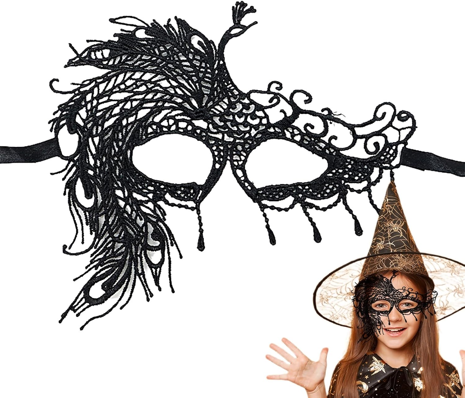 Benda sull'occhio in pizzo nero, accessorio per costume per il viso - Accessorio per feste Cosplay Costume di Carnevale di Halloween per donne e ragazze