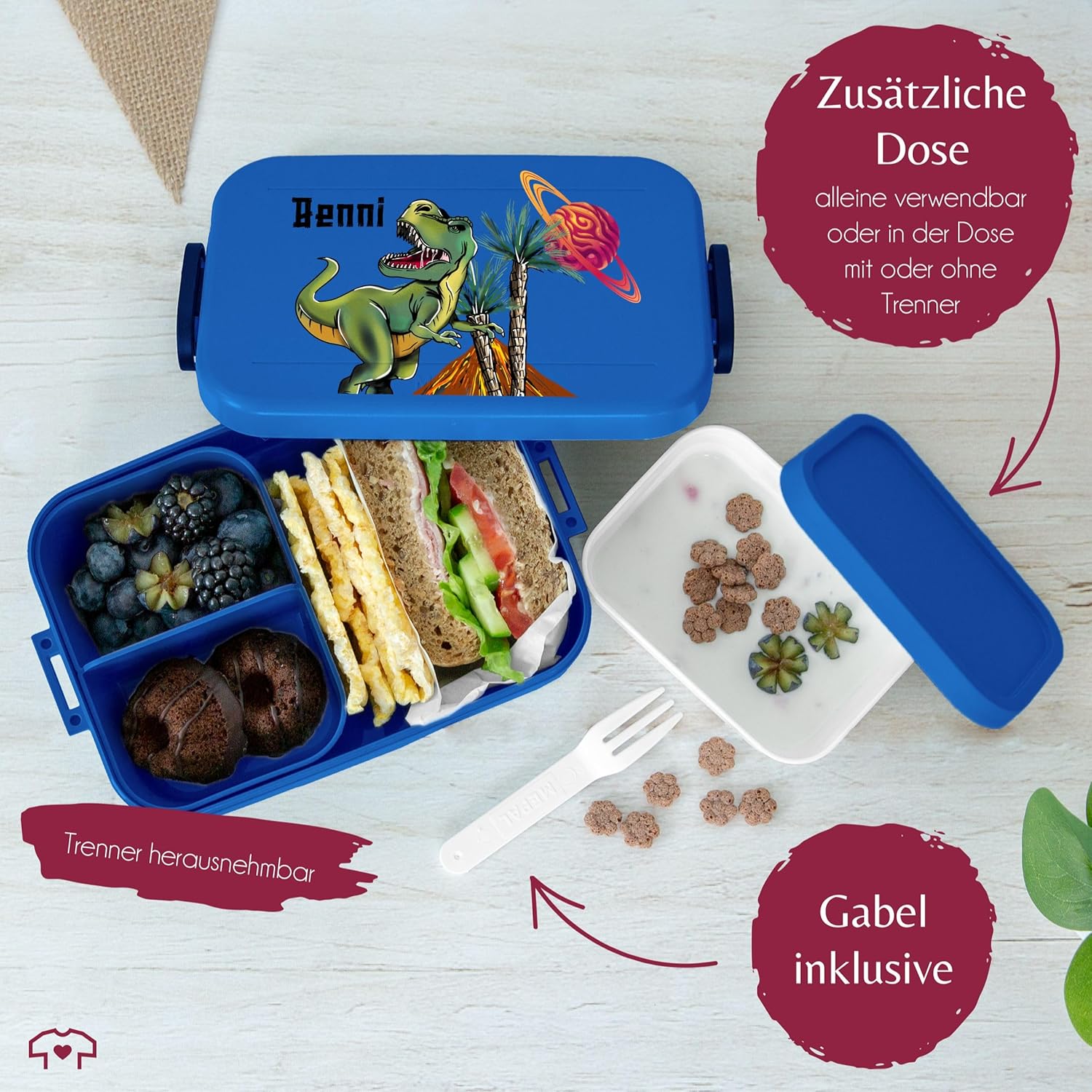 | Enthaltene Komponenten | Bento-Einsätze, Brotdose, Snack-Gabel |
