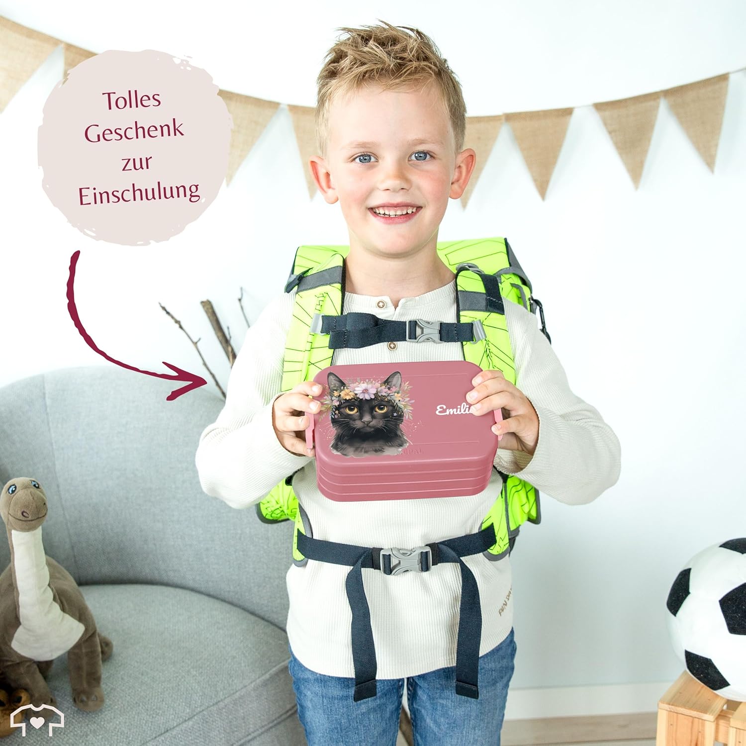 Inserti Bento e forchetta snack: Il contenitore per il pranzo Bento ha due diversi inserti Bento che consentono di separare cibo e snack. Grazie alla pratica forchetta snack, mangiare in viaggio è particolarmente semplice e soprattutto igienico. Questo rende il bento box ideale come compagno durante le vacanze scolastiche o quando hai fame, non importa se sei in viaggio, a scuola o all'asilo. Spazio sufficiente: questo fantastico contenitore per il pranzo con stampa offre spazio sufficiente per un massimo di quattro panini o altri piccoli snack, come verdure tritate o frutti di bosco. Questo lo rende ideale per un pasto abbondante ed equilibrato durante le vacanze scolastiche o all'asilo. Grazie alla fantastica stampa a motivi potrete regalare ai vostri piccoli un regalo davvero speciale! Lavabile in lavastoviglie: la pulizia della bento box può essere facilmente eseguita in lavastoviglie. Anche il materiale della lattina stampata è privo di BPA. Ciò significa che il contenitore per il pranzo è privo di sostanze chimiche nocive. Ciò significa che puoi goderti lo spuntino della pausa senza preoccupazioni e nulla ostacola un utilizzo sano e sicuro. Ideale per la scuola e l'asilo: il contenitore per il pranzo Bento con una bellissima stampa è ideale per il pranzo a scuola o all'asilo. La lattina è compatta e facile da trasportare. I vari inserti bento permettono inoltre al tuo bambino di gustare un pasto vario e sano. Varietà di snack: i due inserti bento di cui è dotata la bento box offrono un'ampia varietà di possibilità di utilizzo del lunch box. Pezzi di mela, frutti di bosco, ecc. possono essere conservati separatamente nei propri scomparti oppure è possibile rimuovere gli inserti per avere più spazio per il pranzo. Non importa come usi il portapranzo: il cibo rimane sempre fresco e appetitoso.