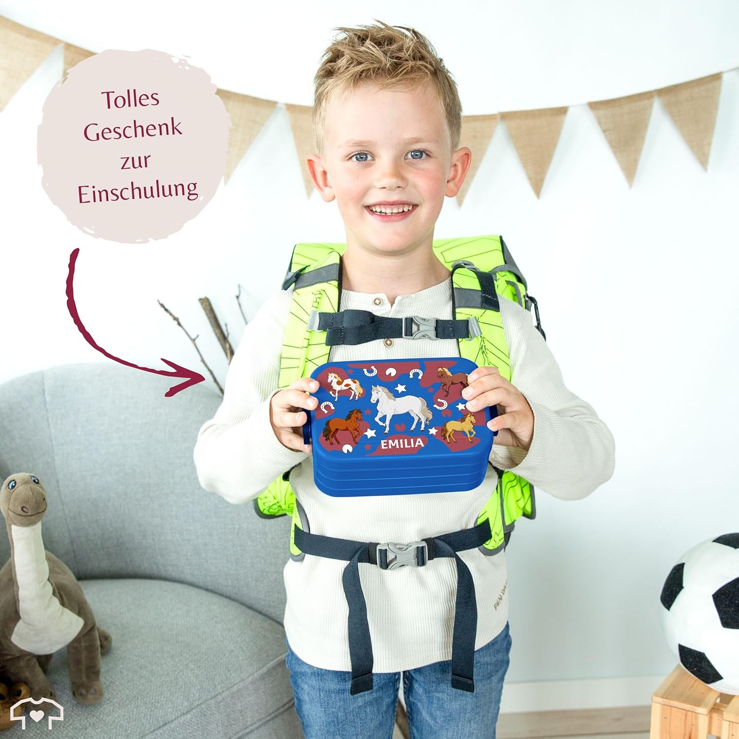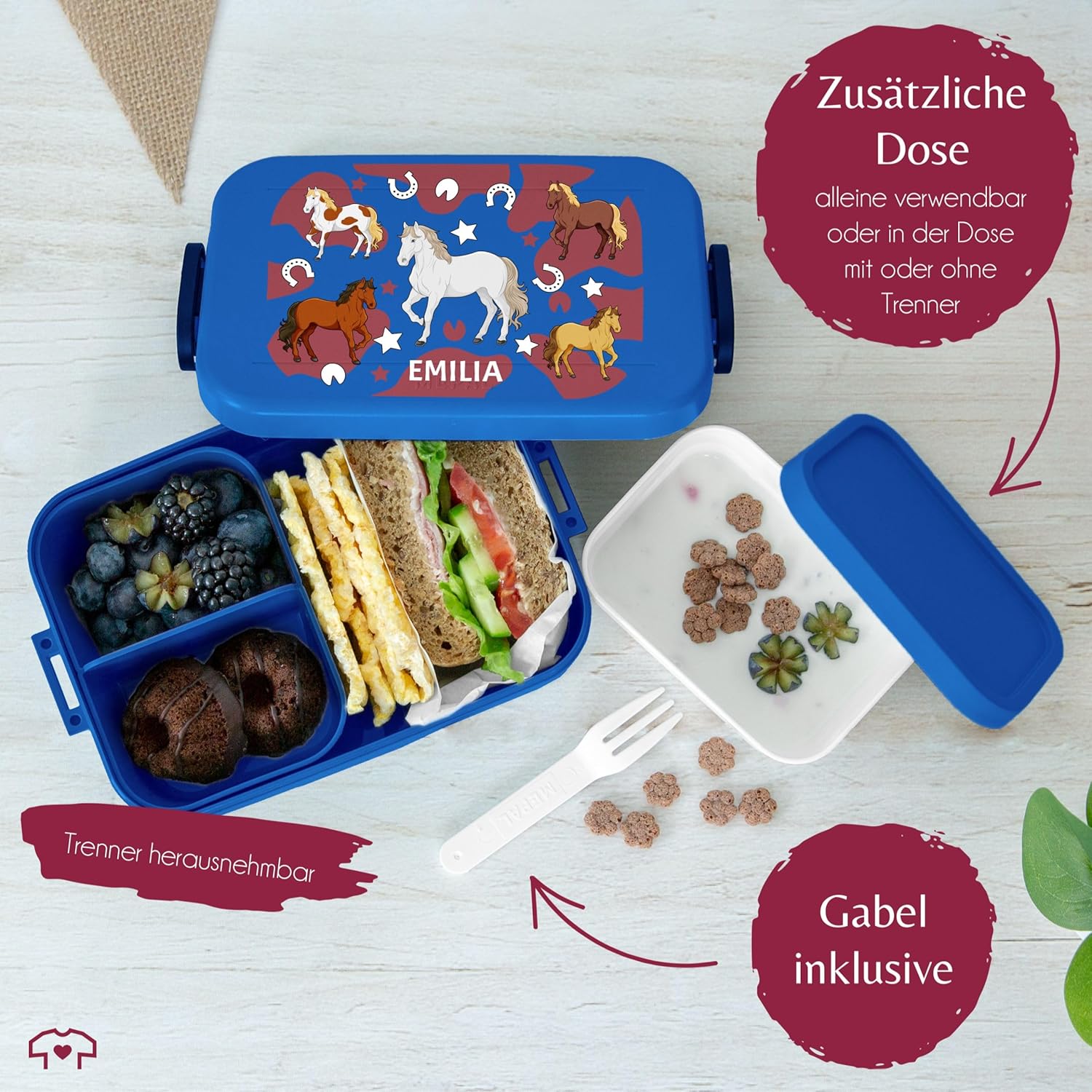 Il design giusto per i bambini: genitori e nonni saranno felici di rendere felici gli amanti dei cavalli con questo simpatico motivo. Il design carino è perfetto per tutti e sarai sicuro di colpire nel segno se cerchi "bento box lunch box horse". Cosa stai aspettando? Colpisci subito! Grafica sull'amore per i cavalli: la felicità di questa terra sta nel dorso dei cavalli! Ti trovi solitamente nei maneggi con i cavalli? O conosci qualcuno che è un assoluto amante dei cavalli? Il motivo giocoso convince tutti coloro che cercano un "portapranzo per cavalli" e cercano contenitori per il pranzo per cavalli abbinati. Ideale per ogni occasione: vuoi regalare un regalo davvero speciale questa volta? Oppure stai attualmente cercando “cavalli da pranzo”? Sorprendi il tuo protetto con il regalo giusto per questo evento e rendilo felice con il nostro motivo. REGALO CAVALLI: questo simpatico motivo è perfetto per gli appassionati di cavalli e per chiunque ami cavalcare Inserti Bento e forchetta snack: il contenitore per il pranzo Bento ha due diversi inserti Bento che ti consentono di separare cibo e snack. Grazie alla pratica forchetta snack, mangiare in viaggio è particolarmente semplice e soprattutto igienico. Questo rende il bento box ideale come compagno durante le vacanze scolastiche o quando hai fame, non importa se sei in viaggio, a scuola o all'asilo.