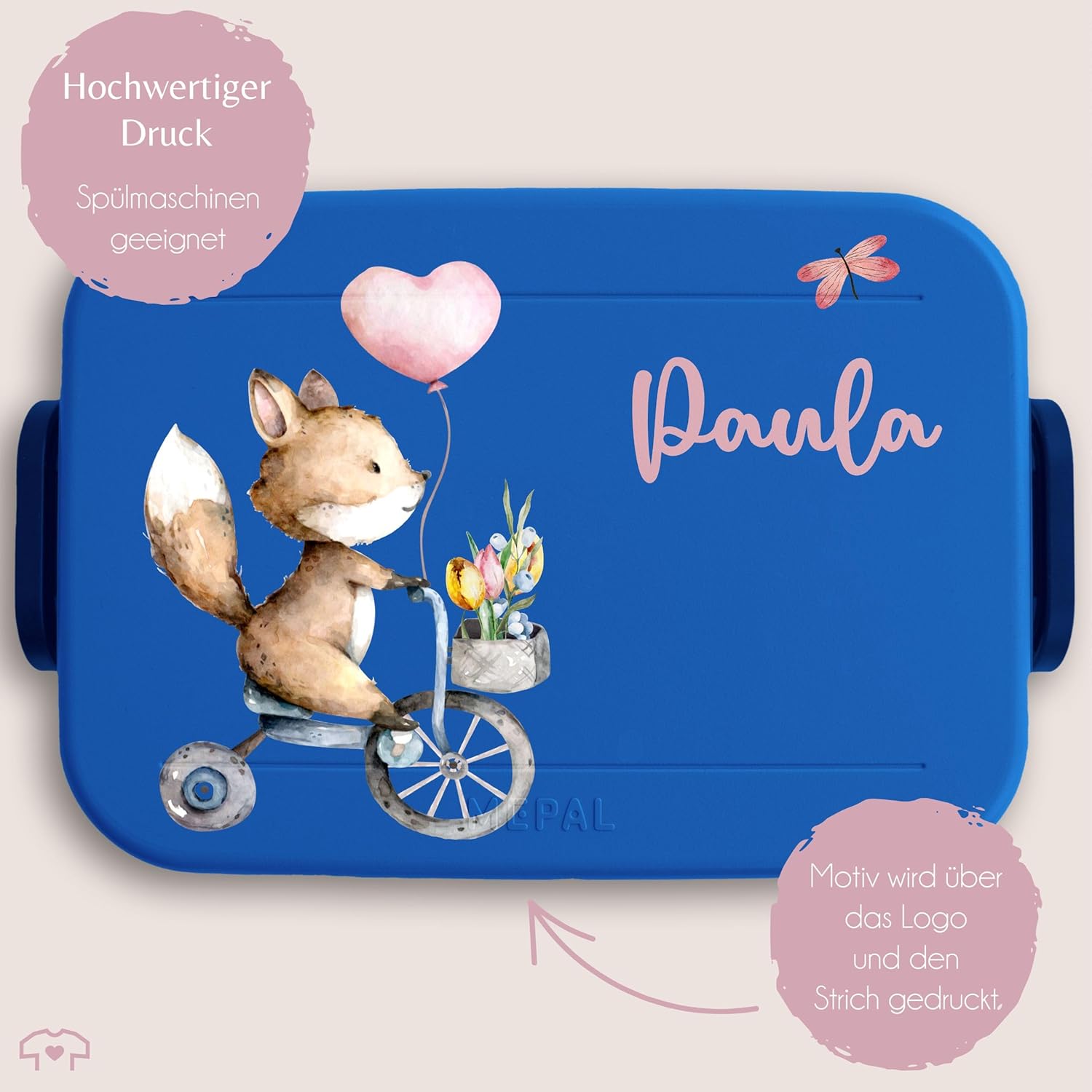 MOTIVO VOLPE: simpatica stampa con una volpe su una bicicletta e il nome desiderato per i bambini Inserti Bento e forchetta snack: Il contenitore per il pranzo Bento ha due diversi inserti Bento che consentono di separare cibo e snack. Grazie alla pratica forchetta snack, mangiare in viaggio è particolarmente semplice e soprattutto igienico. Questo rende il bento box ideale come compagno durante le vacanze scolastiche o quando hai fame, non importa se sei in viaggio, a scuola o all'asilo. Spazio sufficiente: questo fantastico contenitore per il pranzo con stampa offre spazio sufficiente per un massimo di quattro panini o altri piccoli snack, come verdure tritate o frutti di bosco. Questo lo rende ideale per un pasto abbondante ed equilibrato durante le vacanze scolastiche o all'asilo. Grazie alla fantastica stampa a motivi potrete regalare ai vostri piccoli un regalo davvero speciale! Lavabile in lavastoviglie: la pulizia della bento box può essere facilmente eseguita in lavastoviglie. Anche il materiale della lattina stampata è privo di BPA. Ciò significa che il contenitore per il pranzo è privo di sostanze chimiche nocive. Ciò significa che puoi goderti lo spuntino della pausa senza preoccupazioni e nulla ostacola un utilizzo sano e sicuro. Ideale per la scuola e l'asilo: il contenitore per il pranzo Bento con una bellissima stampa è ideale per il pranzo a scuola o all'asilo. La lattina è compatta e facile da trasportare. I vari inserti bento permettono inoltre al tuo bambino di gustare un pasto vario e sano.