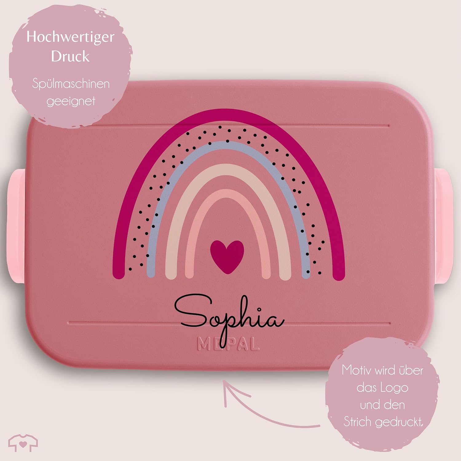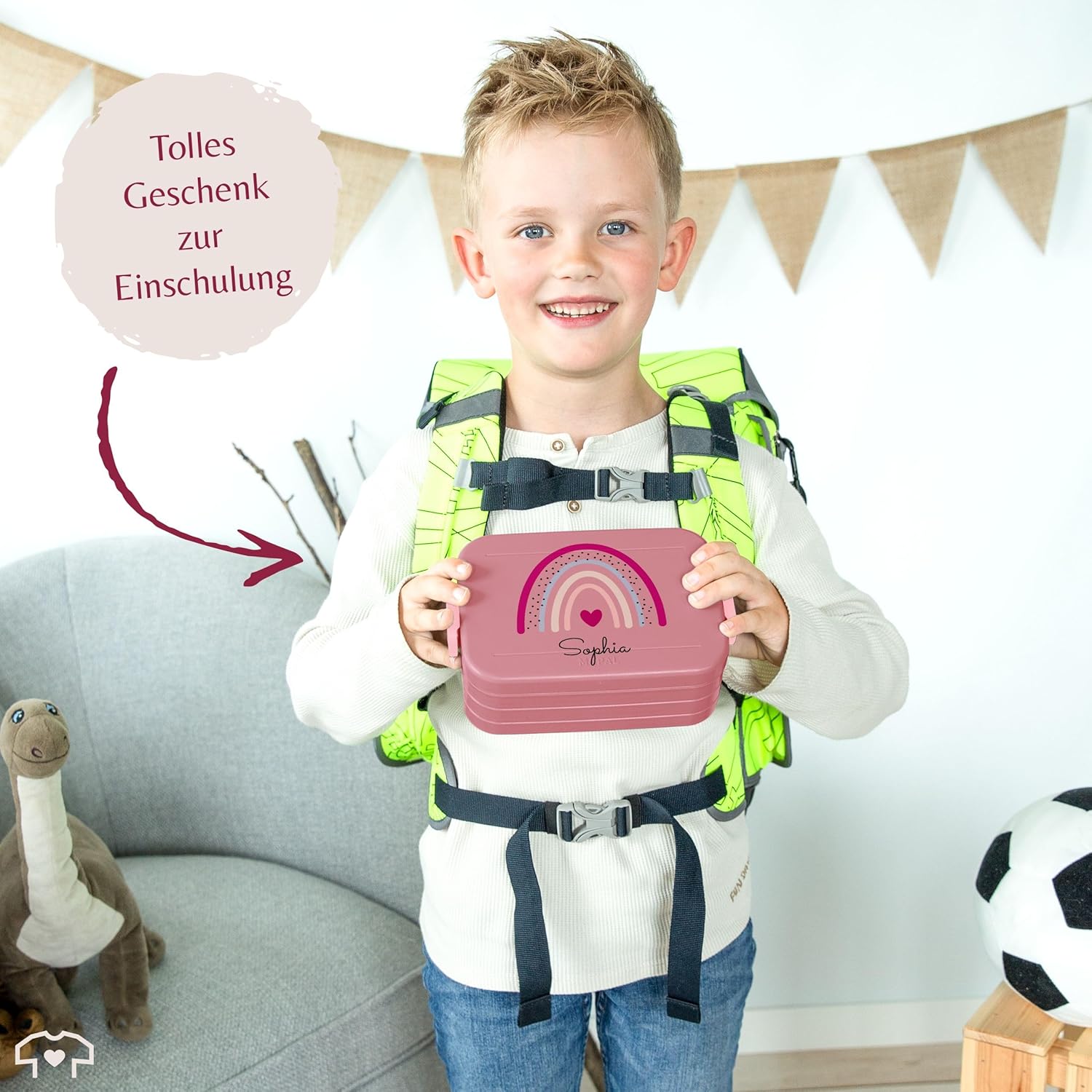 Adatto ad ogni occasione: questa volta vuoi regalare un regalo davvero speciale? Oppure stai cercando “portapranzo rosa chiaro”? Sorprendi il tuo protetto con il regalo giusto per questo giorno e rendilo felice con il nostro design. Regalo per bambini: cercavate una “jausenbox bambini rosa” per fare un regalo al vostro protetto o ai vostri figli? Allora questo fantastico motivo sarà un vero successo! La combinazione di cuore e arcobaleno è qualcosa di molto speciale e completa il look boho. Con questo design attirerai sicuramente l'attenzione e ti farai sorridere. Motivo con testo a scelta: i regali personalizzati sul tema degli arcobaleni sono particolarmente apprezzati. Sul tema arcobaleno, puoi personalizzare questo simpatico disegno con cuori e arcobaleni esattamente secondo i tuoi desideri. Rendi davvero felici i tuoi piccoli con questo fantastico motivo personalizzato! MOTIVO ARCOBALENO: bellissima stampa con arcobaleno e nome desiderato per i bambini Inserti Bento e forchetta snack: Il contenitore per il pranzo Bento ha due diversi inserti Bento che consentono di separare cibo e snack. Grazie alla pratica forchetta snack, mangiare in viaggio è particolarmente semplice e soprattutto igienico. Questo rende il bento box ideale come compagno durante le vacanze scolastiche o quando hai fame, non importa se sei in viaggio, a scuola o all'asilo.