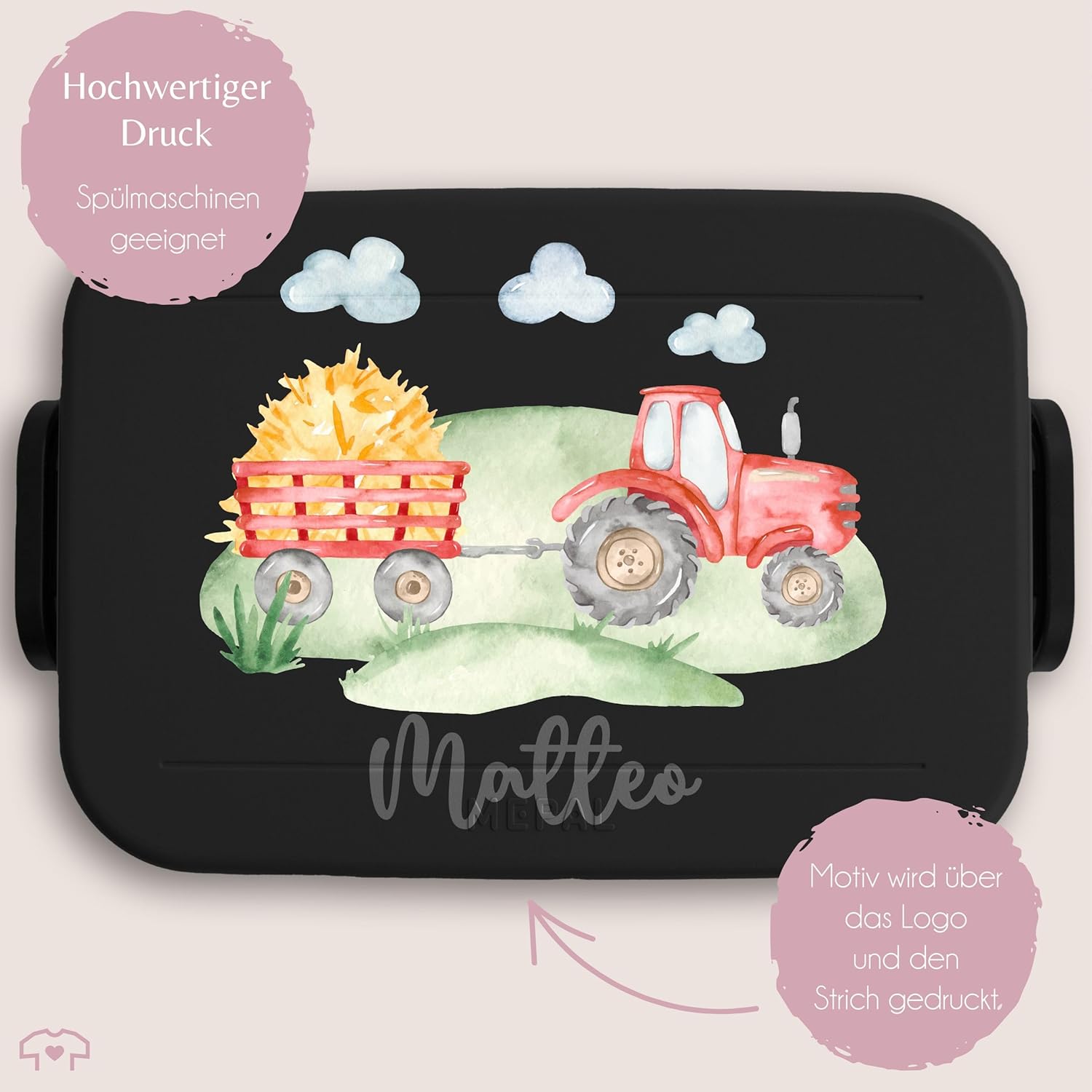 ✔️ REGALI PER GLI AMANTI DEL TRATTORE: il simpatico motivo del trattore in stile acquerello è un ottimo regalo per i bambini. Inserti per bento e forchetta per snack: il contenitore per il pranzo bento ha due diversi inserti per bento che consentono di separare cibo e snack. Grazie alla pratica forchetta snack, mangiare in viaggio è particolarmente semplice e soprattutto igienico. Questo rende il bento box ideale come compagno durante le vacanze scolastiche o quando hai fame, non importa se sei in viaggio, a scuola o all'asilo. Spazio sufficiente: questo fantastico contenitore per il pranzo con stampa offre spazio sufficiente per un massimo di quattro panini o altri piccoli snack, come verdure tritate o frutti di bosco. Questo lo rende ideale per un pasto abbondante ed equilibrato durante le vacanze scolastiche o all'asilo. Grazie alla fantastica stampa a motivi potrete regalare ai vostri piccoli un regalo davvero speciale! Lavabile in lavastoviglie: la pulizia della bento box può essere facilmente eseguita in lavastoviglie. Anche il materiale della lattina stampata è privo di BPA. Ciò significa che il contenitore per il pranzo è privo di sostanze chimiche nocive. Ciò significa che puoi goderti lo spuntino della pausa senza preoccupazioni e nulla ostacola un utilizzo sano e sicuro. Ideale per la scuola e l'asilo: il contenitore per il pranzo Bento con una bellissima stampa è ideale per il pranzo a scuola o all'asilo. La lattina è compatta e facile da trasportare. I vari inserti bento permettono inoltre al tuo bambino di gustare un pasto vario e sano.