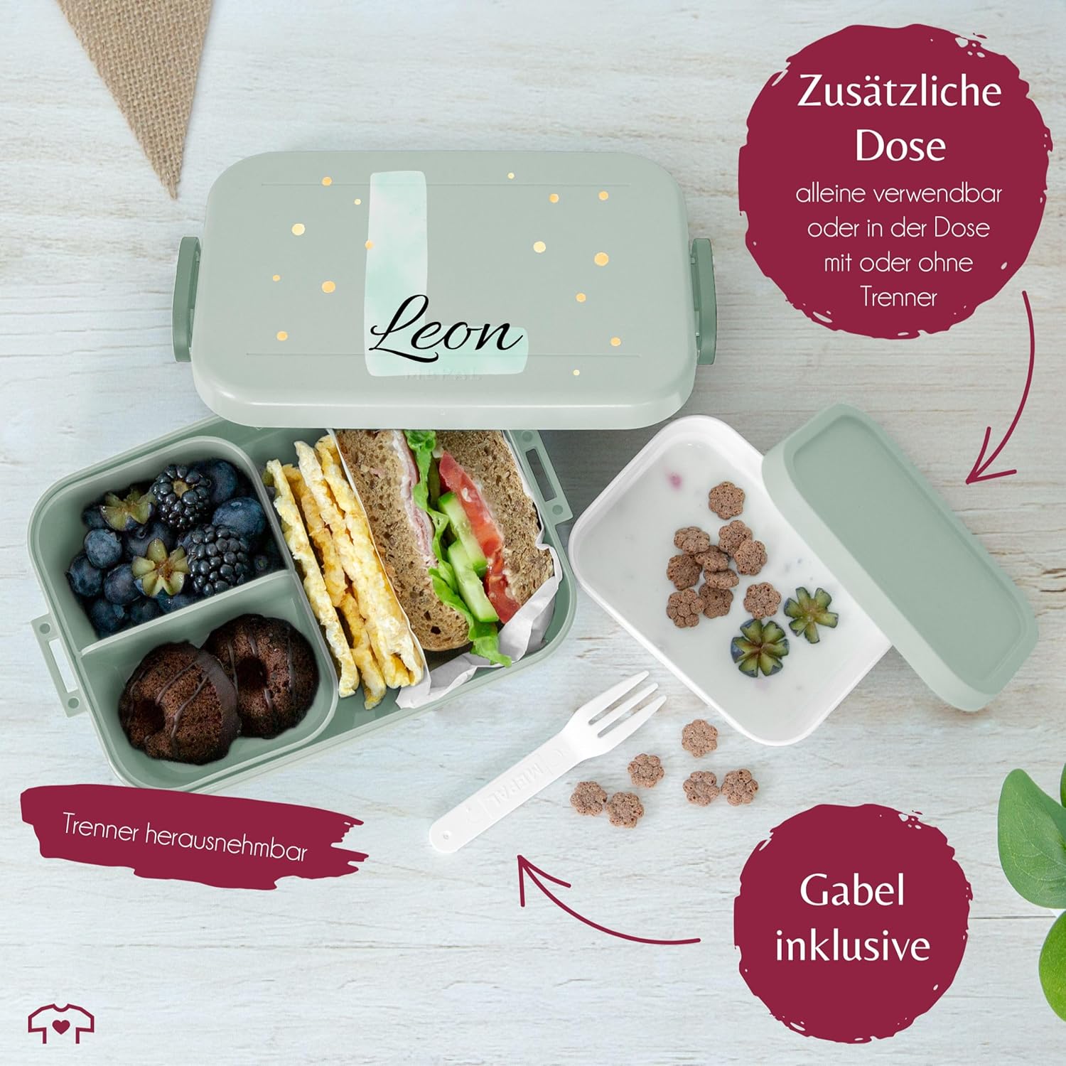 Inserti Bento e forchetta snack: Il contenitore per il pranzo Bento ha due diversi inserti Bento che consentono di separare cibo e snack. Grazie alla pratica forchetta snack, mangiare in viaggio è particolarmente semplice e soprattutto igienico. Questo rende il bento box ideale come compagno durante le vacanze scolastiche o quando hai fame, non importa se sei in viaggio, a scuola o all'asilo. Spazio sufficiente: questo fantastico contenitore per il pranzo con stampa offre spazio sufficiente per un massimo di quattro panini o altri piccoli snack, come verdure tritate o frutti di bosco. Questo lo rende ideale per un pasto abbondante ed equilibrato durante le vacanze scolastiche o all'asilo. Grazie alla fantastica stampa a motivi potrete regalare ai vostri piccoli un regalo davvero speciale! Lavabile in lavastoviglie: la pulizia della bento box può essere facilmente eseguita in lavastoviglie. Anche il materiale della lattina stampata è privo di BPA. Ciò significa che il contenitore per il pranzo è privo di sostanze chimiche nocive. Ciò significa che puoi goderti lo spuntino della pausa senza preoccupazioni e nulla ostacola un utilizzo sano e sicuro. Ideale per la scuola e l'asilo: il contenitore per il pranzo Bento con una bellissima stampa è ideale per il pranzo a scuola o all'asilo. La lattina è compatta e facile da trasportare. I vari inserti bento permettono inoltre al tuo bambino di gustare un pasto vario e sano. Varietà di snack: i due inserti bento di cui è dotata la bento box offrono un'ampia varietà di possibilità di utilizzo del lunch box. Pezzi di mela, frutti di bosco, ecc. possono essere conservati separatamente nei propri scomparti oppure è possibile rimuovere gli inserti per avere più spazio per il pranzo. Non importa come usi il portapranzo: il cibo rimane sempre fresco e appetitoso.