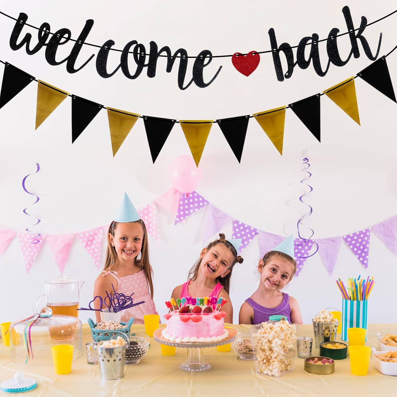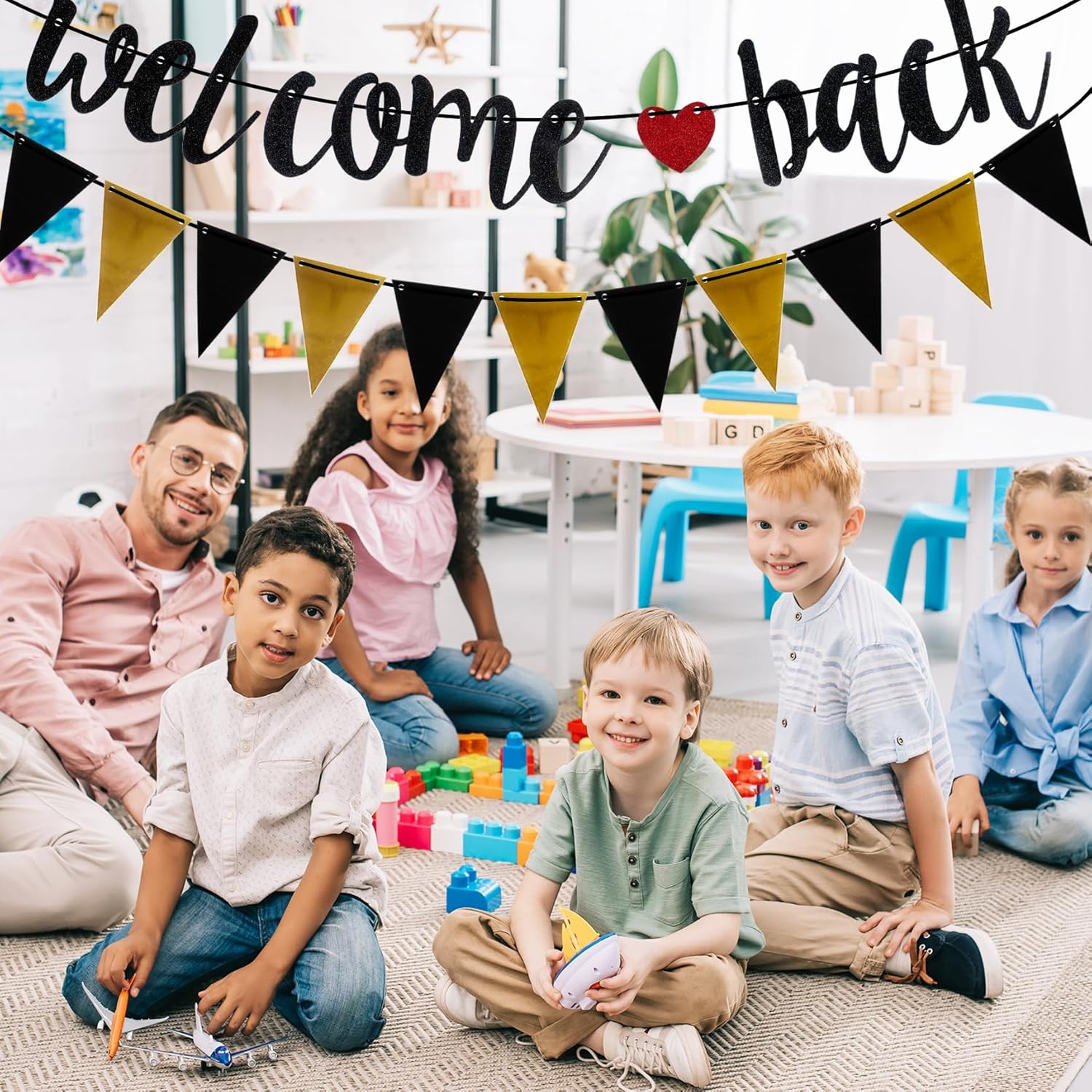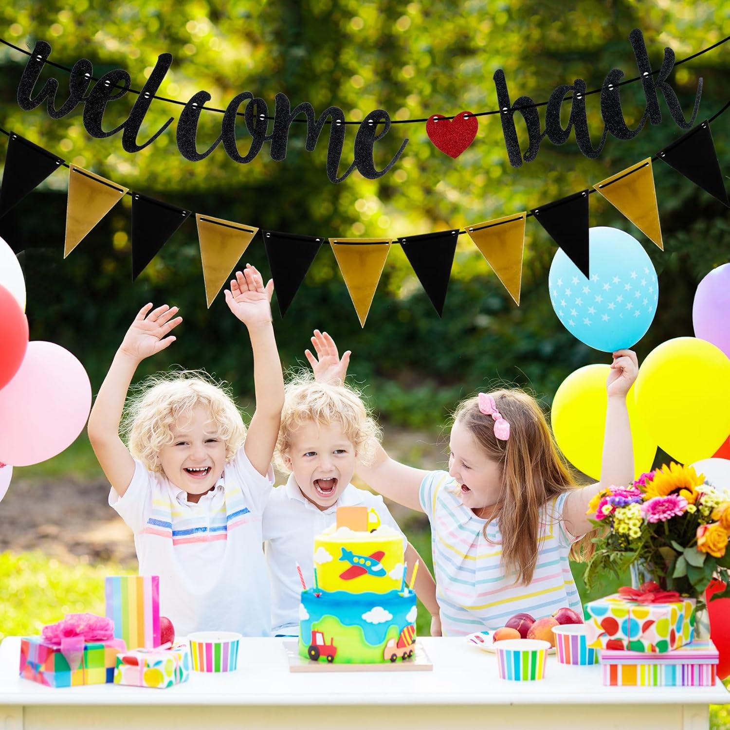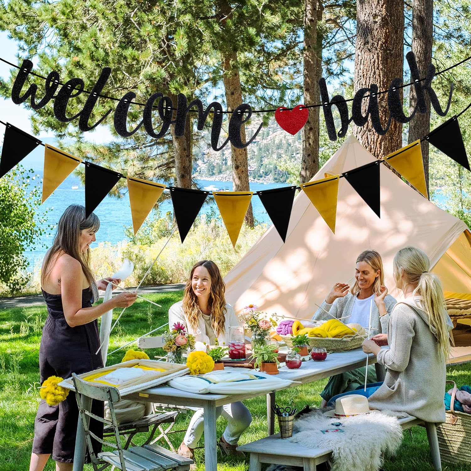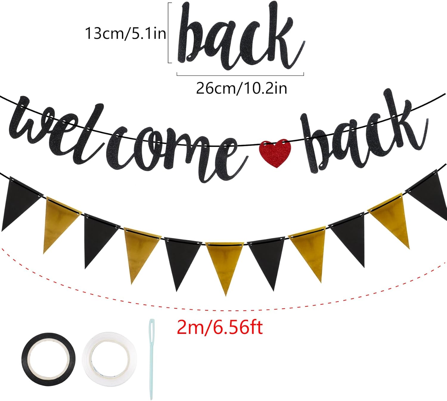 Vibrante decorazione per la festa di bentornato: 1 ghirlanda nera di bentornato con cuore rosso, 1 striscione con bandiera triangolare dorata e nera. Crea un'atmosfera calda e felice per la festa di ritorno a scuola, riunioni di famiglia e altro ancora. Materiale di alta qualità: la ghirlanda di bentornato è realizzata in carta di alta qualità, è robusta, durevole e resistente allo sbiadimento e ai danni e può essere riutilizzata per una varietà di celebrazioni. Facile da usare: i biglietti sullo striscione di bentornato sono progettati con fori predisposti in modo che possano essere facilmente appesi e attaccati a pareti, corridoi, rami, porte, ecc. Uso versatile: le decorazioni della ghirlanda di bentornato sono perfette per accogliere una persona cara, un collega o uno studente. Sono adatti per feste di rientro a scuola, eventi scolastici, riunioni di famiglia, ritorno dalle vacanze e altre occasioni per creare un ricevimento vivace ed elegante. Soddisfazione garantita: se riscontri problemi con questa ghirlanda di bentornato, contattaci via e-mail e ti forniremo una soluzione soddisfacente entro 24 ore!
