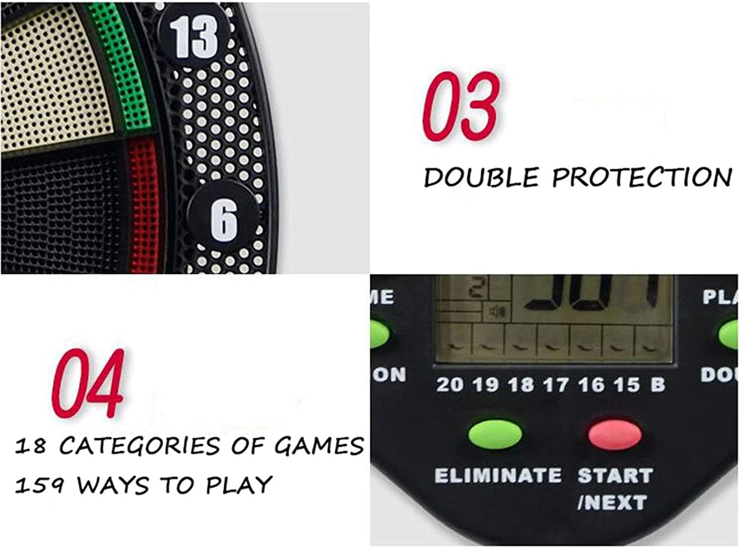 Tabellone segnapunti elettronico for freccette con area bersaglio da 16", ideale sia for feste che for allenamenti, e con punta morbida, che rende questo bersaglio digitale sicuro for bambini e adulti! Bersaglio elettronico for le freccette, I bersagli elettronici for freccette sono dotati di schermi LCD, consentono di vedere chiaramente il punteggio anche da lontano, sono dotati di 18 giochi integrati con 159 varianti e possono ospitare fino a 8 giocatori. La superficie ben progettata cattura ogni lancio con precisione, non c'è bisogno di registrare il punteggio e il divertimento aumenta con i giochi integrati. Il bersaglio utilizza un sistema a spirale in acciaio ad alta resistenza, che combina durata e precisione.