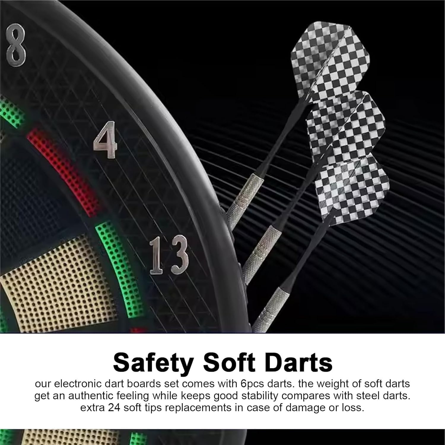 Molteplici modalità di gioco: il bersaglio è adatto per 1-16 giocatori e offre 27 giochi con 243 opzioni di gioco. Con diversi livelli di difficoltà, il bersaglio garantisce divertimento per tutte le età e livelli di esperienza di gioco Gioco divertente del gruppo: il bersaglio è dotato di 4 indicatori a LED, che calcolano automaticamente il punteggio e dispongono delle proprie indicazioni vocali. Questo ti permette di giocare in squadre e fino a 16 persone possono giocare contemporaneamente. È più interessante del comune bersaglio Gioco sicuro di freccette: la superficie termoplastica di alta qualità e il design con punta morbida rendono questo bersaglio digitale sicuro per bambini o adulti. Questo bersaglio da appendere dispone di un anello esterno protettivo in rete per catturare efficacemente le freccette fuori destinazione nell'ambiente e prolungare la durata delle freccette e proteggere la parete Alimentazione flessibile: tutto ciò di cui hai bisogno per il gioco è incluso. Il nuovo bersaglio elettronico può essere alimentato da batteria o dall'alimentatore in dotazione (con alimentazione permanente). Basta collegare l'alimentatore, appendere il bersaglio e scegliere la modalità di gioco Qualità superiore: il bersaglio elettronico è il compagno perfetto per gli amanti delle freccette. Con fori per segmenti concavi e segmenti resistenti e testati, questo bersaglio resiste anche ai lanci più forti