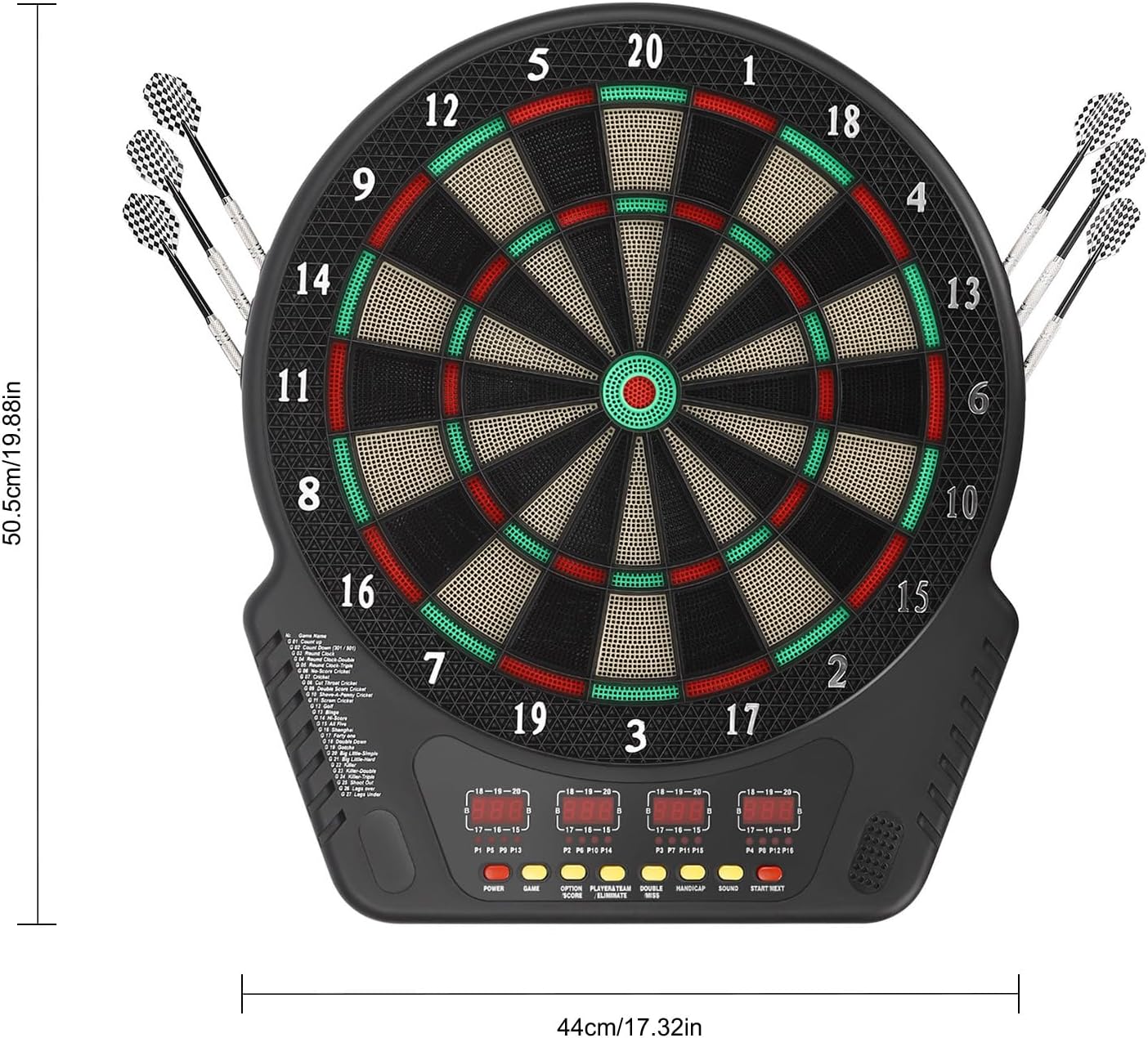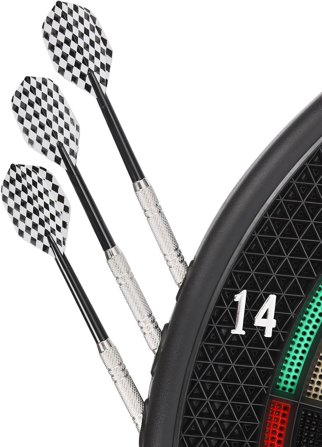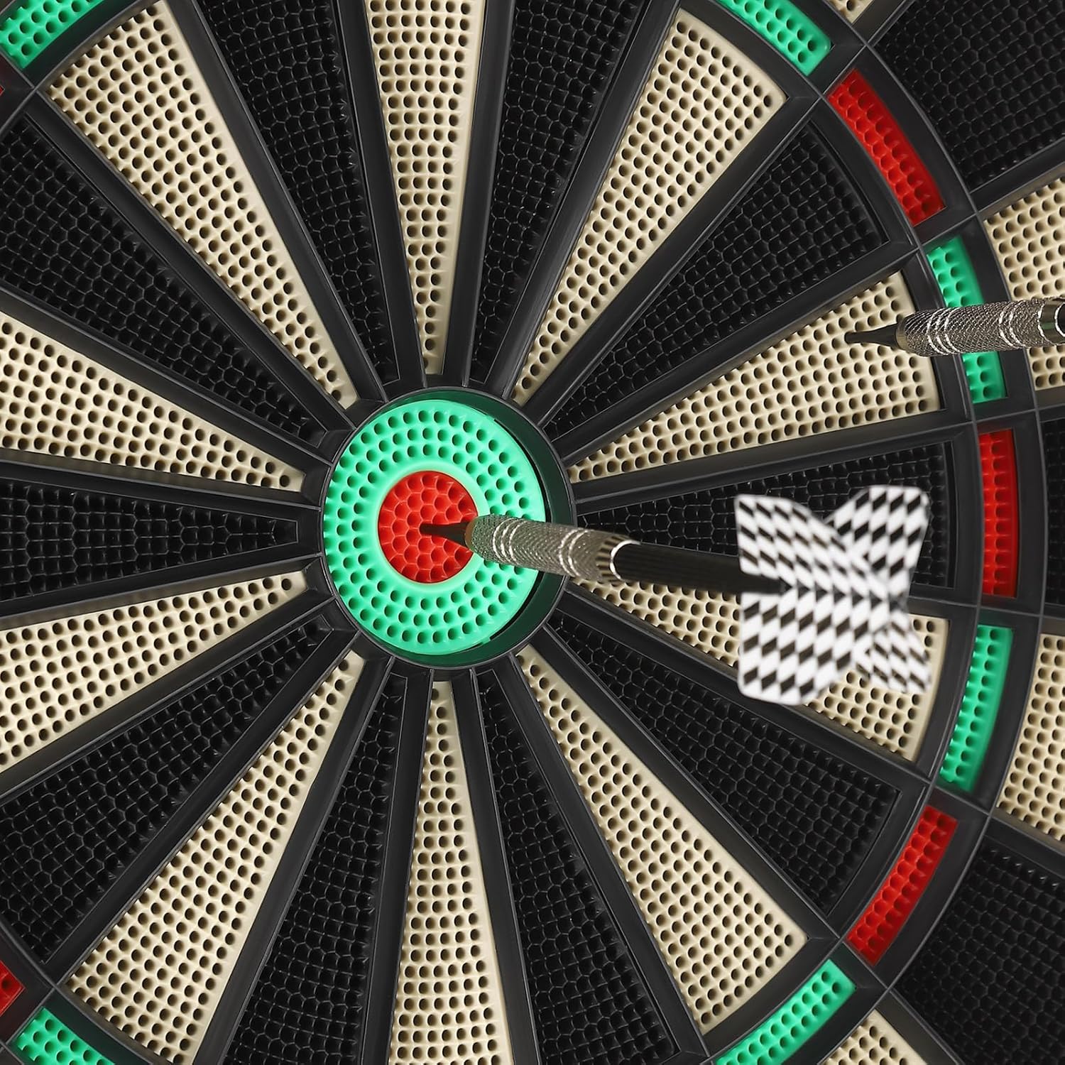 Varianti di gioco versatili: con 27 diversi giochi e 243 varianti di gioco, questo bersaglio elettronico offre un divertimento infinito fino a 16 giocatori. Ideale per feste e serate di gioco per godersi momenti insieme. Design resistente: il bersaglio elettronico è realizzato con materiali di alta qualità come ABS e PP ed è realizzato con processo di stampaggio a iniezione. È robusta e resistente all'abrasione, con una lunga durata e un'esperienza di gioco sicura grazie alle punte morbide e al design a nido d'ape. Possibile utilizzo all'aperto: con un cavo di alimentazione lungo 1,8 m e la possibilità di funzionare con 4 batterie AA (non incluse), questo bersaglio elettronico per freccette è ideale anche per attività all'aperto. L'ibernazione automatica consente di risparmiare energia. Facile da usare: il bersaglio elettronico è dotato di 4 schermi LED, messaggi vocali e conteggio automatico. Ha un pannello di controllo chiaro ed è facile da installare, con ganci sul retro della tavola. Regalo ideale: con 6 freccette, 24 teste di freccette e un manuale inglese incluso, questa macchina per freccette è un regalo perfetto per amici, colleghi o familiari.