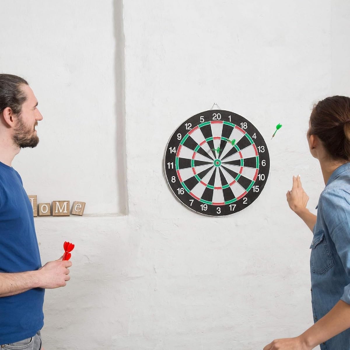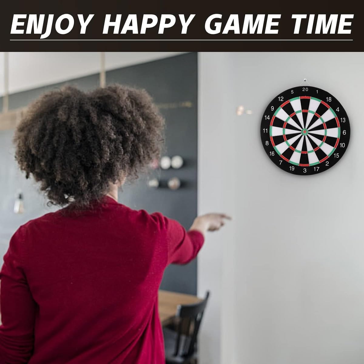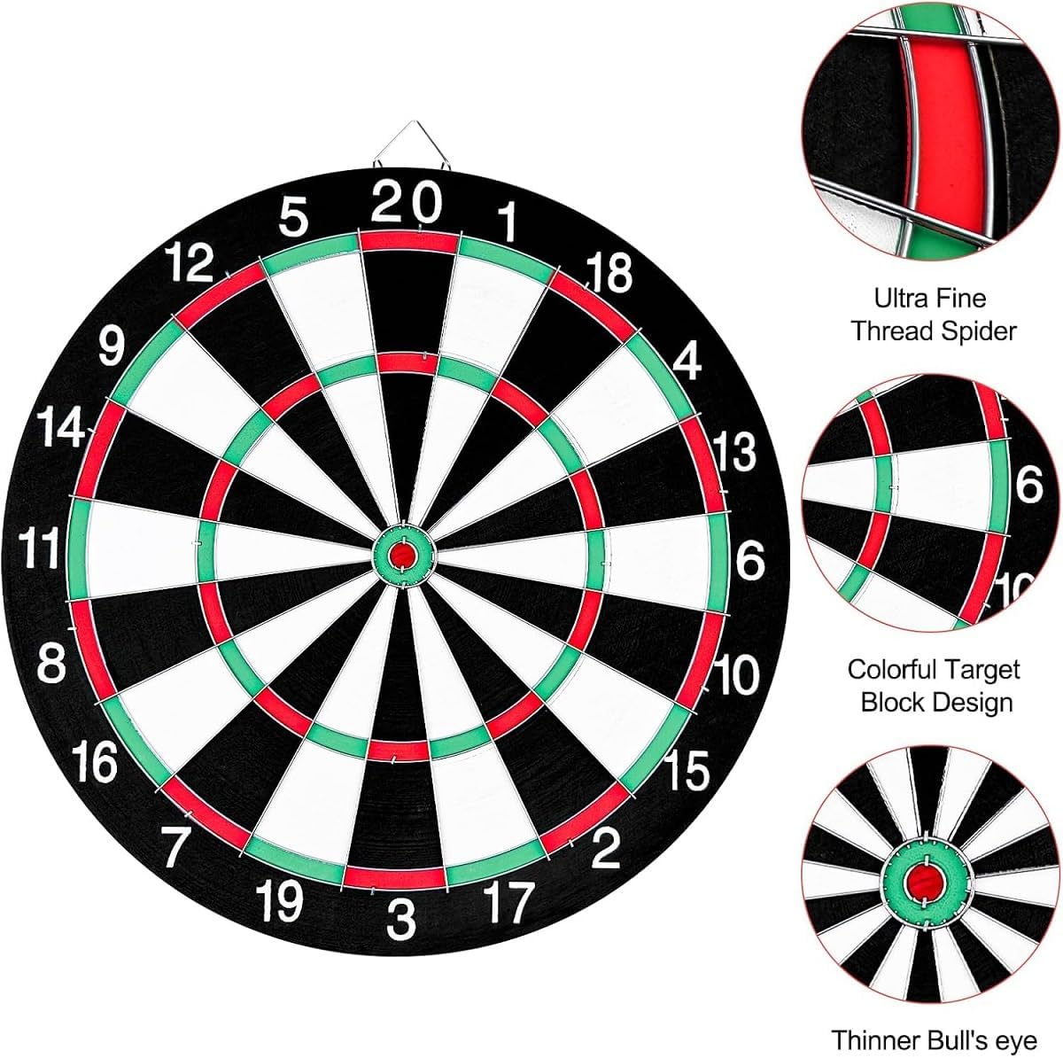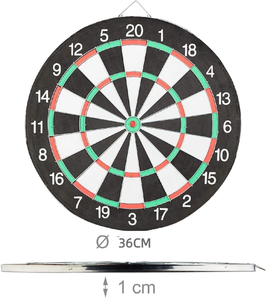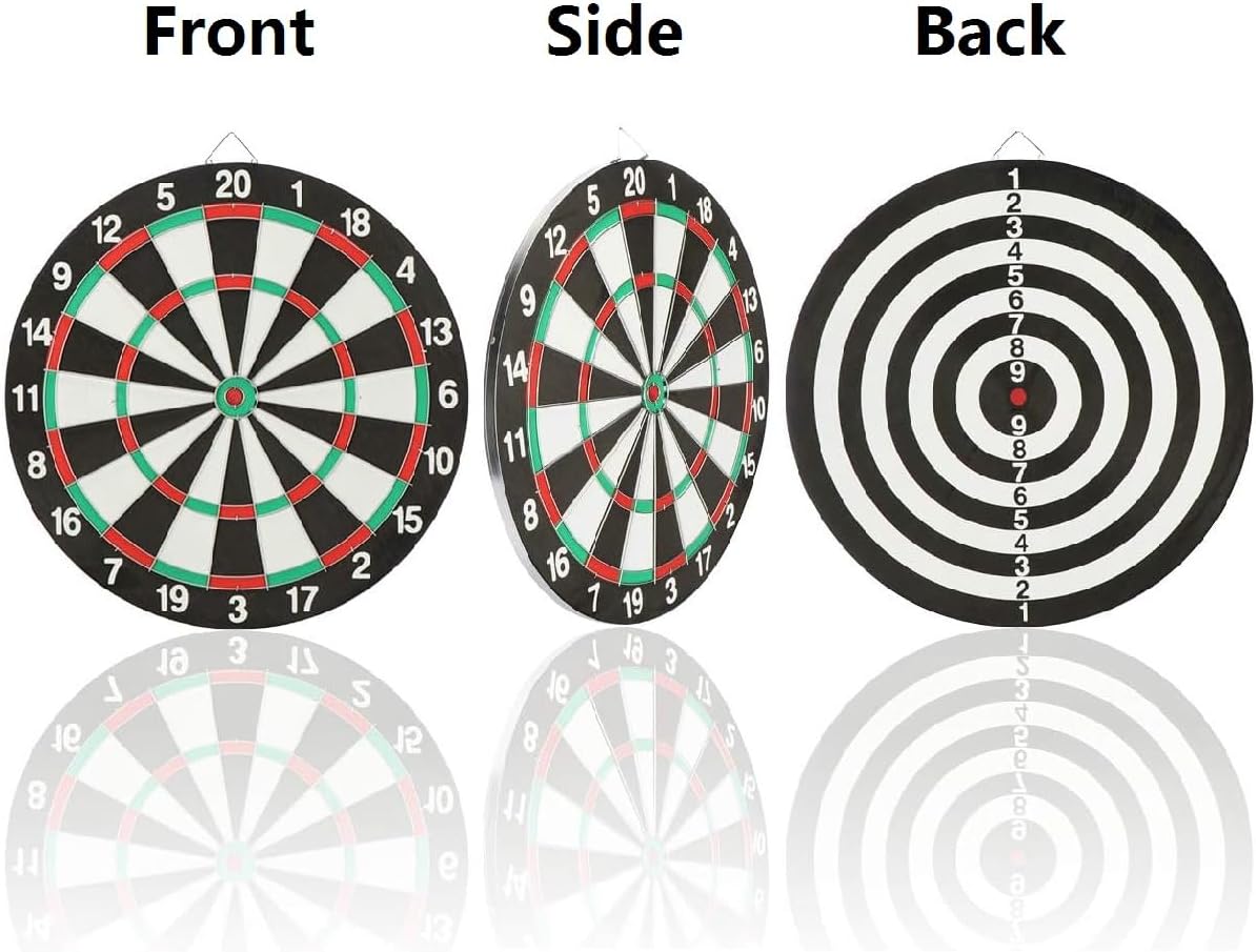 SCHEDA DI CARTA PER PRINCIPIANTI: la scheda ufficiale per freccette da torneo è perfetta per i principianti, i bambini e gli adulti che vogliono imparare a giocare a freccette! GIOCO A DOPPIA FACCIA PER DIVERTIMENTO: il bersaglio a doppia faccia offre una varietà di modi di giocare e garantisce il divertimento di grandi e piccini. Basta capovolgerlo per scoprire nuovi modi di giocare. MATERIALE DI QUALITÀ PREMIUM: l'anello per freccette è realizzato in fibra di alta qualità, morbida, inodore e resistente. INSTALLAZIONE FACILE: semplice processo di installazione, può essere appeso alla parete o utilizzato con un supporto, flessibile e pratico. DIVERTIMENTO IN FAMIGLIA GARANTITO: organizzate una divertente gara in famiglia con i vostri figli per diventare maestri di freccette insieme. I bambini possono imparare facilmente le freccette bianche e nere e praticare l'aritmetica mentale divertendosi!