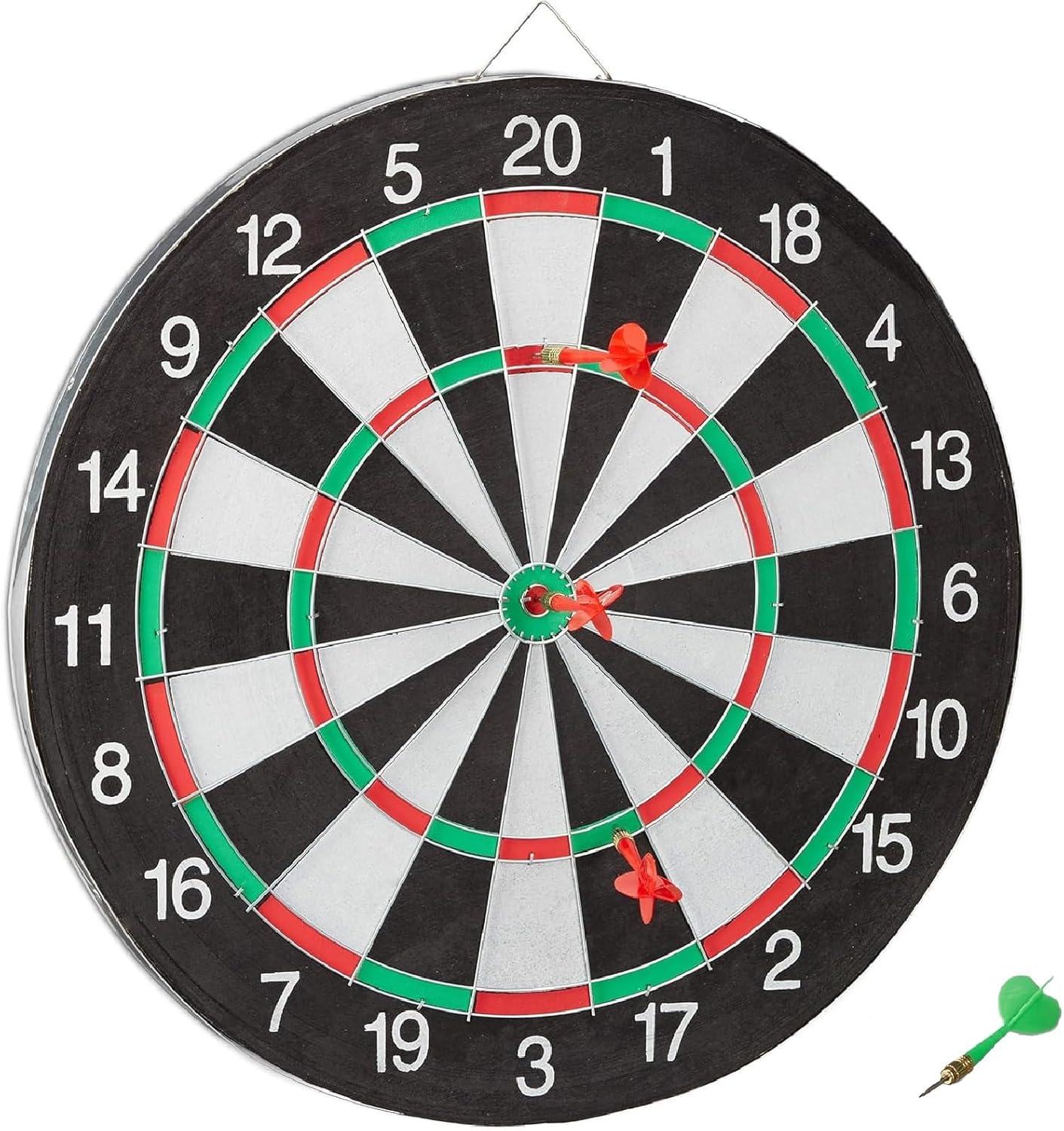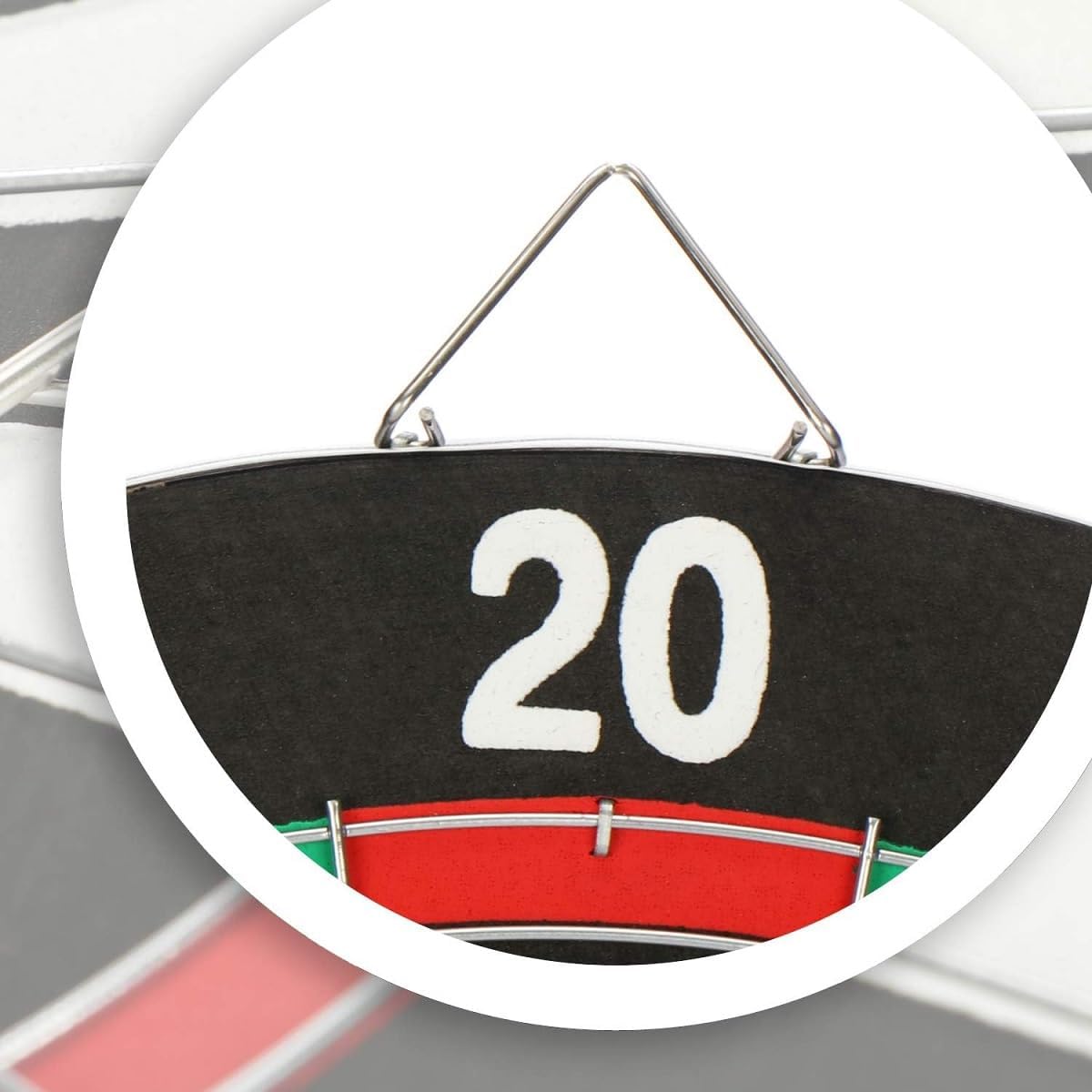 SCHEDA DI CARTA PER PRINCIPIANTI: la scheda ufficiale per freccette da torneo è perfetta per i principianti, i bambini e gli adulti che vogliono imparare a giocare a freccette! GIOCO A DOPPIA FACCIA PER DIVERTIMENTO: il bersaglio a doppia faccia offre una varietà di modi di giocare e garantisce il divertimento di grandi e piccini. Basta capovolgerlo per scoprire nuovi modi di giocare. MATERIALE DI QUALITÀ PREMIUM: l'anello per freccette è realizzato in fibra di alta qualità, morbida, inodore e resistente. INSTALLAZIONE FACILE: semplice processo di installazione, può essere appeso alla parete o utilizzato con un supporto, flessibile e pratico. DIVERTIMENTO IN FAMIGLIA GARANTITO: organizzate una divertente gara in famiglia con i vostri figli per diventare maestri di freccette insieme. I bambini possono imparare facilmente le freccette bianche e nere e praticare l'aritmetica mentale divertendosi!