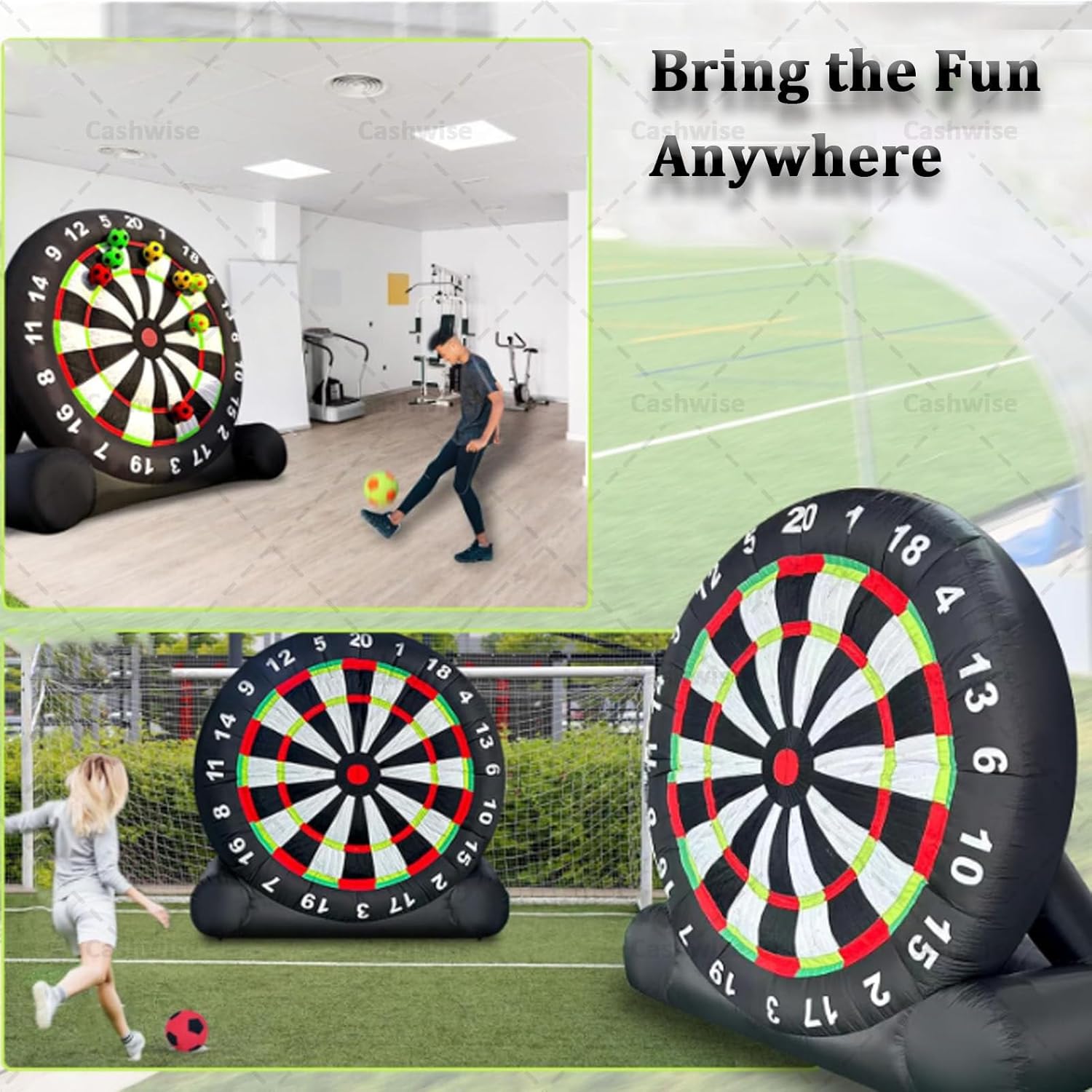 ● Gioco di freccette gigante: il bersaglio gonfiabile per freccette da calcio è un'attività fantastica per i singoli che vogliono affinare le proprie abilità o per le squadre di giocatori che competono per il punteggio migliore. Che si tratti di sfidare le rivalità familiari o di creare team sul posto di lavoro, questo divertimento offre ore di divertimento in cortili, palestre, scuole, festival comunitari o parcheggi aziendali. ● Materiali eccellenti: il nostro bersaglio gonfiabile gigante per freccette è dotato di una struttura solida, realizzata in tessuto Oxford nero 210D di alta qualità con tecnologia a doppia cucitura all'avanguardia, resistente al freddo, al calore, agli strappi, antistatico e a tenuta stagna. Non è solo un gioco: è un'esperienza emozionante di alta qualità che porterà le tue avventure di lancio delle freccette a nuovi livelli. ● Bersaglio per freccette extra adesivo: il bersaglio per freccette adotta un design super adesivo, che può far sì che ogni pallone da calcio venga colpito in modo costante, proprio come le freccette che si attaccano al bersaglio. I giochi gonfiabili da esterno aumenteranno il divertimento e la sfida nel raggiungere l'obiettivo, in modo che i giocatori abbiano un maggiore senso di realizzazione. ● Cosa puoi ottenere: Bersaglio per freccette: 9,84 piedi x 9,18 piedi / 12,46 piedi x 10,17 piedi. L'attrezzatura include: 1 soffiatore da 350 W, 8 palloni da calcio, 1 pompa manuale, 1 telo di riparazione, 4 corde, 4 picchetti. Scegli il gioco sportivo con bersaglio per freccette per un'esperienza straordinaria e imbattibile. Lascia che i bei momenti scorrano. ● Installazione rapida: il pallone da calcio gonfiabile per freccette è facile e comodo da installare. Basta collegare il soffiatore, gonfiare e chiudere la cerniera. Sei pronto a giocare in pochi minuti. Il bersaglio per freccette da calcio è facile da gonfiare e sgonfiare, ripiegabile in un piccolo pezzo dopo lo sgonfiaggio per spostarlo e riporlo facilmente. Tuttavia, ricorda di evitare oggetti appuntiti nelle vicinanze e di sollevarli prima di spostarlo per prevenirne l'usura.