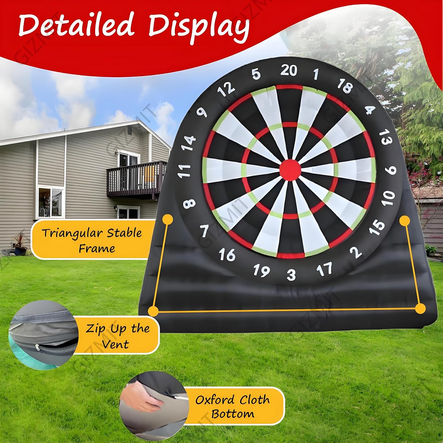 ▲【GONFIAGGIO RAPIDO】: Questo bersaglio gonfiabile per freccette da calcio non richiede lunghi tempi di attesa per il gonfiaggio. Guarda il tuo viso illuminarsi mentre questo gigantesco gioco, alto più di 2,4 metri, si gonfia. Nonostante le sue dimensioni enormi, si gonfia in meno di 5 minuti! (Nota: è necessario continuare a gonfiare durante l'uso) ▲【RICCHI REGALI】: Include 8 palloni da calcio in feltro (colori casuali) e una pompa ad aria. Questo bersaglio gigante da calcio è l'ultimo arrivato tra gli sport, che combina calcio e freccette. La sua forte aderenza e la presa extra rendono facile anche per i giocatori più piccoli staccare il bersaglio. ▲【OLTRE 15 ESPERIENZE DI GIOCO】: Hai finalmente trovato un divertente gioco per attività all'aperto e una scelta perfetta come regalo. Il divertimento non finisce mai con i nostri giochi originali ESCLUSIVI. Il nostro bersaglio gonfiabile per freccette è adatto per Kick Ball, Long Ball, Shoot, D-A-R-T-S, Home Run Derby, Golf, solo per citarne alcuni. ▲【BASE ULTRA-STABILE】: Il gioco Air Ball è realizzato in tessuto Oxford, che può prevenire l'elettricità statica ed è più resistente all'usura. La base del bersaglio gonfiabile per freccette e calcio è stata notevolmente migliorata, quindi non verrà danneggiata nemmeno dai venti forti. Rendi speciale la tua festa con il nostro gioco di calcio gonfiabile, accendi una competizione amichevole, crea ricordi indimenticabili, divertiamoci! ▲【AMPIE APPLICAZIONI】: I bersagli per freccette da esterno sono adatti per gli appassionati di calcio e calcio e per le aziende di noleggio, scuole, giornate in spiaggia, campi estivi, eventi aziendali, gruppi comunitari, feste in giardino e amici e familiari che amano uno stile di vita attivo e promuovono il lavoro di squadra.