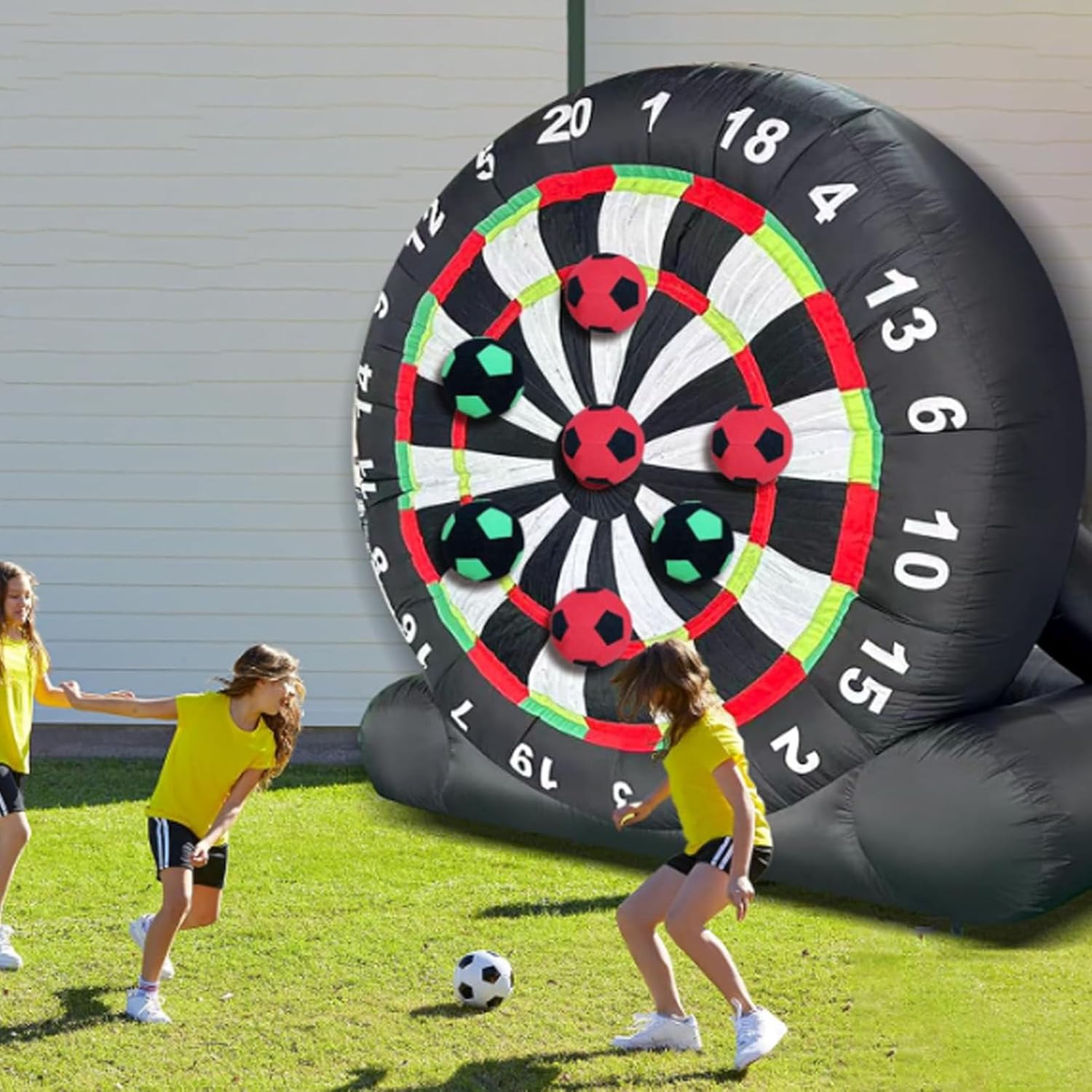 ● Gioco di freccette gigante: il bersaglio gonfiabile per freccette da calcio è un'attività fantastica per i singoli che vogliono affinare le proprie abilità o per le squadre di giocatori che competono per il punteggio migliore. Che si tratti di sfidare le rivalità familiari o di creare team sul posto di lavoro, questo divertimento offre ore di divertimento in cortili, palestre, scuole, festival comunitari o parcheggi aziendali. ● Materiali eccellenti: il nostro bersaglio gonfiabile gigante per freccette è dotato di una struttura solida, realizzata in tessuto Oxford nero 210D di alta qualità con tecnologia a doppia cucitura all'avanguardia, resistente al freddo, al calore, agli strappi, antistatico e a tenuta stagna. Non è solo un gioco: è un'esperienza emozionante di alta qualità che porterà le tue avventure di lancio delle freccette a nuovi livelli. ● Bersaglio per freccette extra adesivo: il bersaglio per freccette adotta un design super adesivo, che può far sì che ogni pallone da calcio venga colpito in modo costante, proprio come le freccette che si attaccano al bersaglio. I giochi gonfiabili da esterno aumenteranno il divertimento e la sfida nel raggiungere l'obiettivo, in modo che i giocatori abbiano un maggiore senso di realizzazione. ● Cosa puoi ottenere: Bersaglio per freccette: 9,84 piedi x 9,18 piedi / 12,46 piedi x 10,17 piedi. L'attrezzatura include: 1 soffiatore da 350 W, 8 palloni da calcio, 1 pompa manuale, 1 telo di riparazione, 4 corde, 4 picchetti. Scegli il gioco sportivo con bersaglio per freccette per un'esperienza straordinaria e imbattibile. Lascia che i bei momenti scorrano. ● Installazione rapida: il pallone da calcio gonfiabile per freccette è facile e comodo da installare. Basta collegare il soffiatore, gonfiare e chiudere la cerniera. Sei pronto a giocare in pochi minuti. Il bersaglio per freccette da calcio è facile da gonfiare e sgonfiare, ripiegabile in un piccolo pezzo dopo lo sgonfiaggio per spostarlo e riporlo facilmente. Tuttavia, ricorda di evitare oggetti appuntiti nelle vicinanze e di sollevarli prima di spostarlo per prevenirne l'usura.