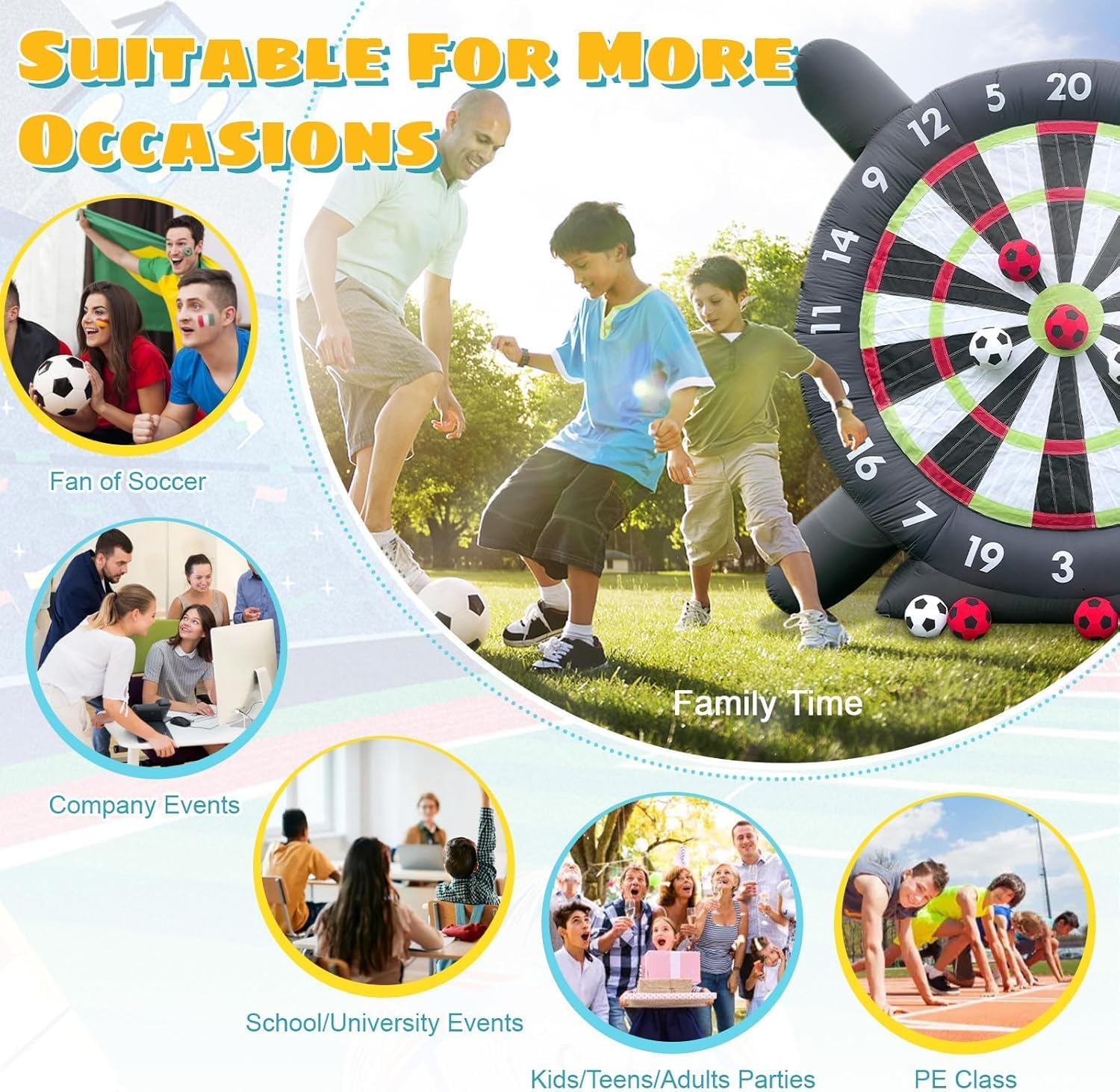 Struttura in tessuto Oxford di alta qualità: realizzato in tessuto Oxford di alta qualità, questo bersaglio gonfiabile per freccette è progettato per resistere all'usura e combattere l'elettricità statica. Le resistenti cuciture doppie garantiscono un'eccezionale ritenzione dell'aria e un uso duraturo, mentre il telaio triangolare offre una maggiore stabilità durante il gioco. Impugnatura migliorata: prova un divertimento ininterrotto con un bersaglio che vanta una superficie ultra appiccicosa, che tiene saldamente le freccette in posizione anche durante i giochi più intensi. La presa forte consente una rimozione senza problemi delle freccette, rendendolo ideale per giocatori di ogni livello di abilità. Installazione facile e veloce: gonfia questo bersaglio in meno di due minuti per un intrattenimento istantaneo. Il design consente un gonfiaggio e uno sgonfiaggio semplici, e si ripiega facilmente per una conservazione compatta e un trasporto senza problemi quando non in uso. Opzioni di gioco versatili: perfetto per riunioni all'aperto e regali, questo bersaglio gonfiabile ospita una varietà di giochi come palla da calcio, palla lunga e golf, fornendo divertimento infinito per tutti i partecipanti. Servizio clienti eccezionale: la vostra soddisfazione è la nostra priorità. Il nostro team di supporto dedicato è pronto ad assistere con qualsiasi richiesta o dubbio, garantendo un'esperienza fluida e piacevole con il nostro prodotto.