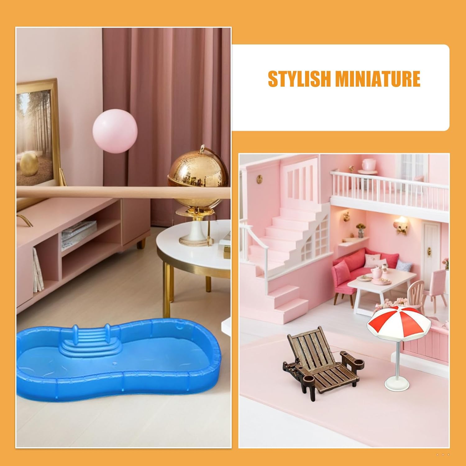 Set completo per la scena da spiaggia: include una piscina per casa delle bambole, un modello di piscina per casa delle bambole, decorazione per una casa delle bambole in miniatura con micropaesaggio da spiaggia e accessori da spiaggia in miniatura, questo set soddisfa molteplici esigenze di decorazione e gioco Design elegante e giocoso: il set da patio in miniatura per casa delle bambole include elementi adorabili come l'ombrellone in miniatura e gli eleganti accessori a bordo piscina della casa delle bambole, rendendo l'arredamento della tua casa delle bambole vivace e attraente Artigianato dettagliato: con una realistica sedia da piscina in miniatura e colori vivaci, questo piccolo modello di piscina da spiaggia offre un'autentica esperienza di arredo da spiaggia per casa delle bambole per scopi di gioco o collezionismo Portatile e semplice da montare: Progettato per un facile utilizzo configurazione, questo set di decorazioni per mini casa delle bambole e decorazioni per piscina in miniatura è facile da trasportare e adatto per l'uso in scene di layout di case delle bambole interne o esterne. Fai da te e multifunzione: ideale per scene in miniatura o ristrutturazioni, questa configurazione a bordo piscina in miniatura ti consente di personalizzare disegni micro-scene di collezioni di spiagge o case, migliorando sia il layout che la creatività della casa delle bambole