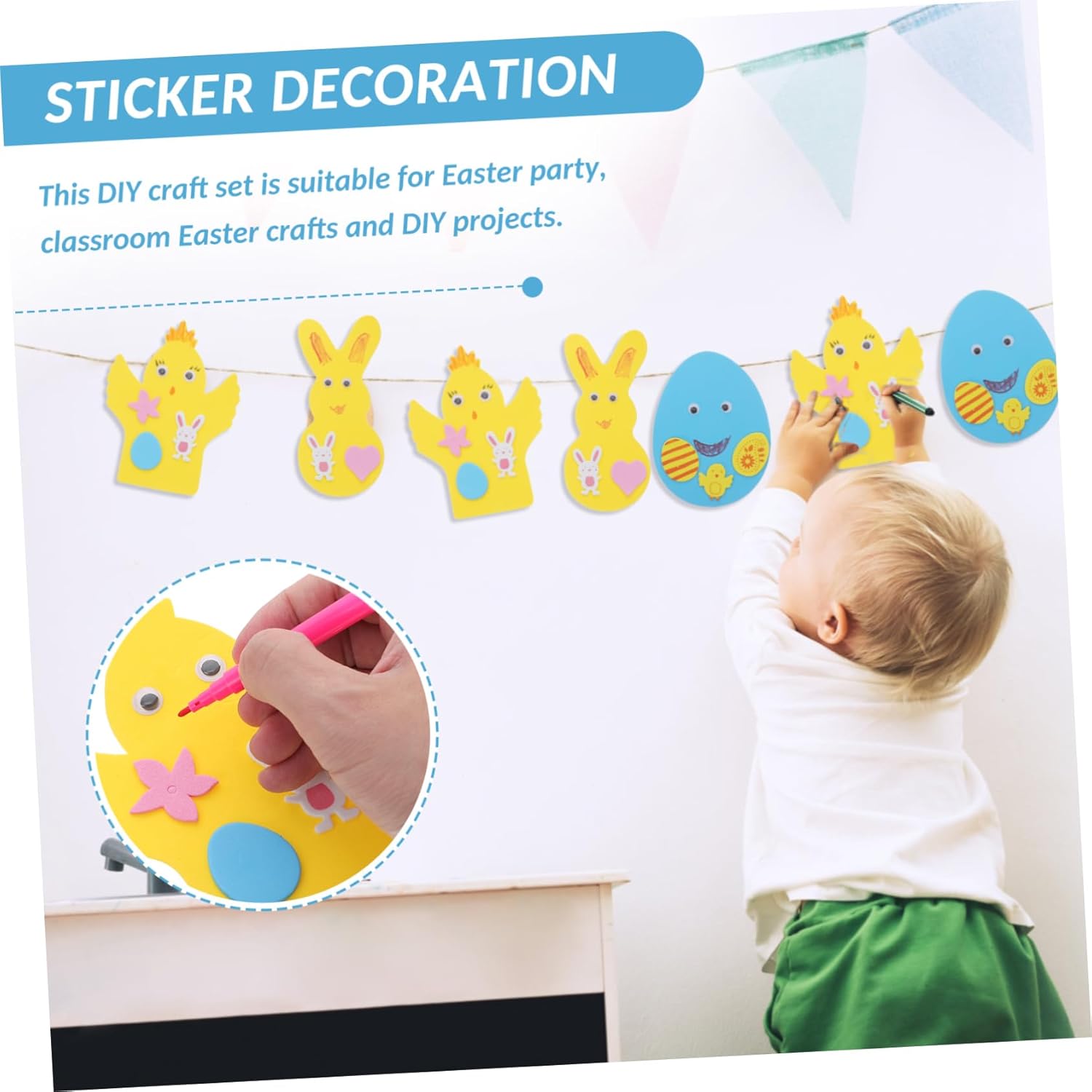 Kit per decorare le uova - con una forma adorabile ed elegante, sarà un'attività molto interessante per la tua festa di Pasqua, forniture per feste I tuoi bambini potranno divertirsi mentre realizzano il nostro kit per decorare le uova Non solo può esercitare l'abilità pratica dei bambini, ma anche aiutarli a divertirsi Forniture per feste di Pasqua - i kit artigianali di Pasqua sono perfetti per i bambini, anche uno per loro a Pasqua, kit per decorare le uova Gli articoli possono essere usati come decorazioni per Pasqua e possono aggiungere un'atmosfera di