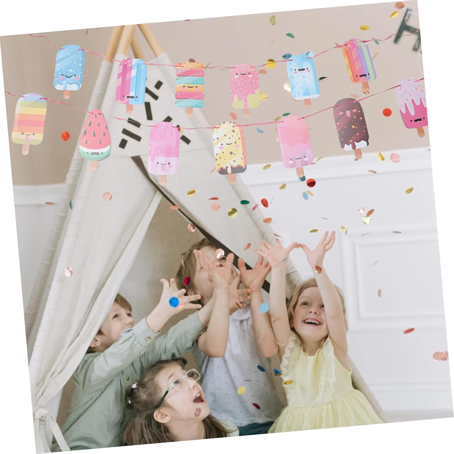 Forniture per feste di compleanno: facili da usare su pareti, finestre, rami o altri luoghi che desideri decorare, leggere e decorative, Decorazioni per feste di compleanno con gelato Banner a tema gelato Decorazioni di compleanno: motivo gelato vivido, facile da decorare la casa, sicuro e non facile da danneggiare, puoi usarlo, Banner per feste di compleanno: crea un'atmosfera calda e migliore, lascerà un'impressione profonda con un design raffinato, Banner per banner di compleanno: non può essere utilizzato come decorazione per la festa, ma anche come supporto fotografico e sfondo per le tue foto, Banner per torta di compleanno: festa brillante verranno utilizzati oggetti di scena da utilizzare, riutilizzabili e squisiti, oggetti di scena per feste