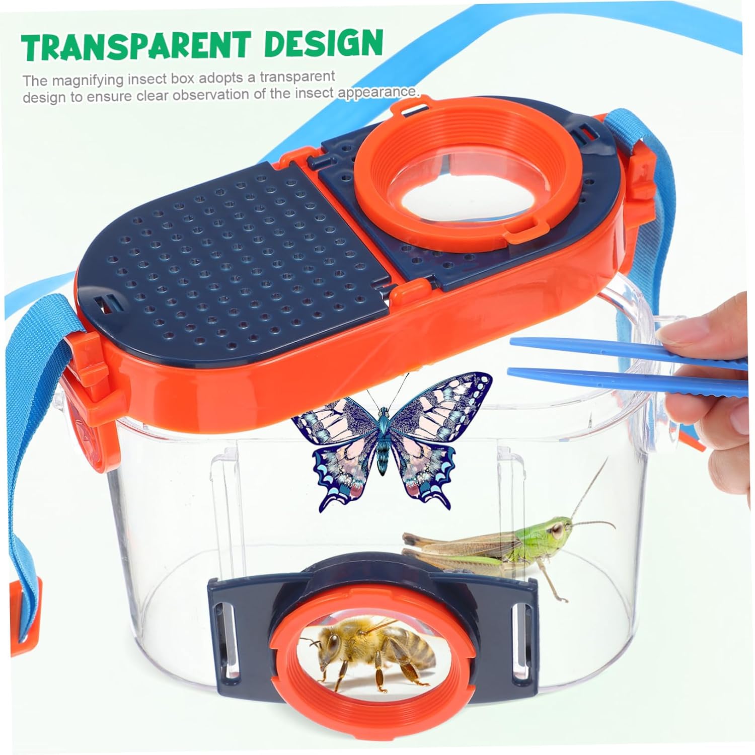 Design traspirante: i fori in questa scatola per insetti assicurano che gli insetti siano mantenuti in un ambiente sano durante l'osservazione prolungata, Terrari per habitat di ragni di insetti, Catcher per insetti per bambini Esplorazione mobile: Dotata di tracolla, questa scatola di ingrandimento per insetti è progettata per la portabilità, rendendola ideale per l'esplorazione all'aperto e progetti scientifici, Scatole per insetti all'aperto, Contenitori per l'osservazione di insetti Strumenti per la manipolazione sicura: La lente d'ingrandimento per insetti viene fornita con pinzette e pinze, consentendo una presa sicura e comoda presa dell'insetto, cornice per esposizione degli insetti, raccoglitore di insetti per bambini Migliore comprensione: questa scatola di ingrandimento promuove una profonda comprensione degli insetti, introducendo un senso di responsabilità verso la natura, giocattoli per l'osservazione degli insetti, mostra di esemplari di insetti Comoda e portatile: dotata di tracolla regolabile per un facile trasporto, questa scatola per l'osservazione degli insetti è ideale per l'osservazione degli insetti da parte dei bambini.