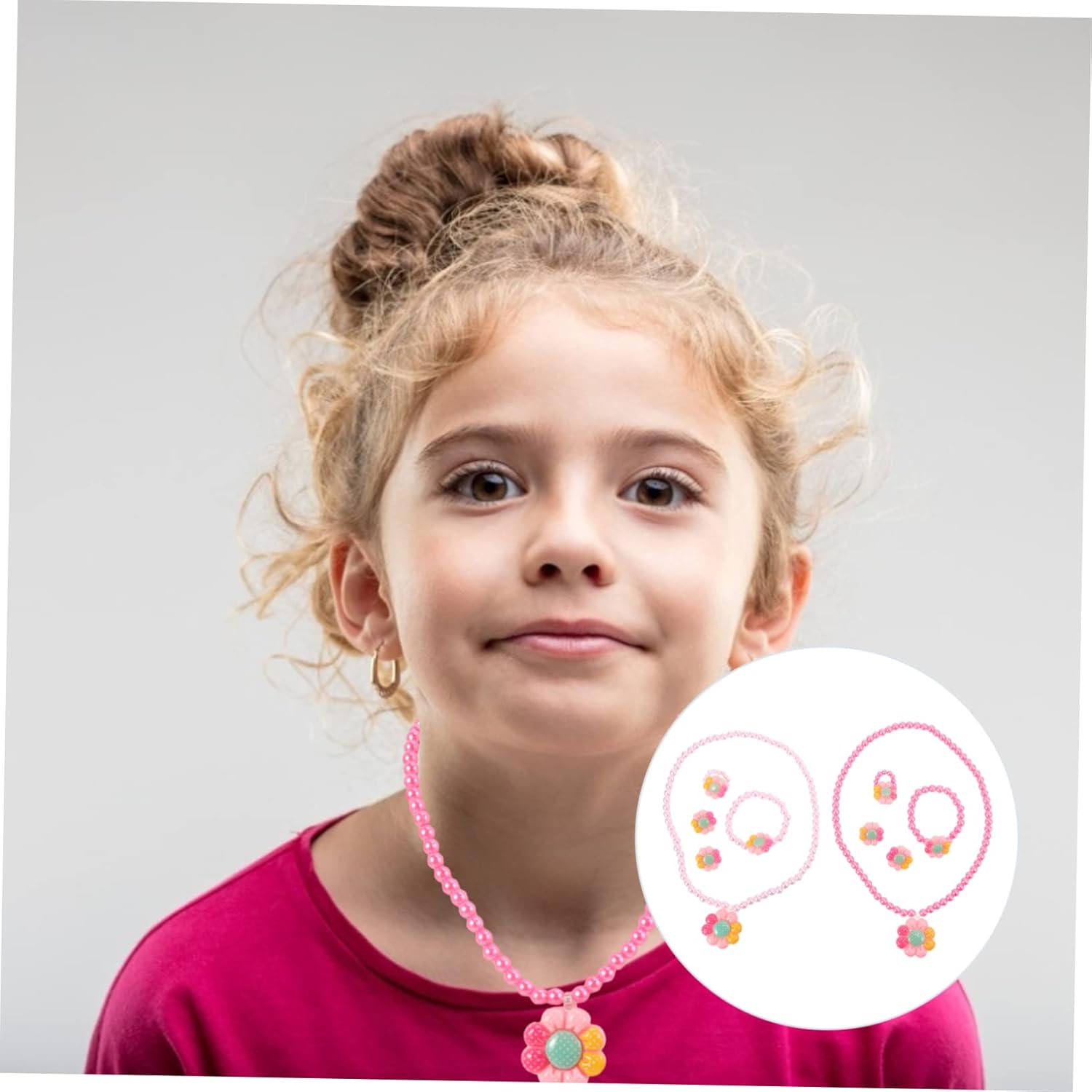 Elenco dei pacchetti 2 set di gioielli per bambini Caratteristiche - Materiale: braccialetto con perline di plastica. - Dimensioni: ca. Collana con perline 10,00 x 2,00 x 2,00 cm/3,93 x 0,79 x 0,79 pollici. - Realizzato in plastica, nessun odore particolare e facile da usare, i bambini possono usarlo. Clip per l'orecchio dei bambini. - Collana dolce in colori assortiti - per feste di compleanno, Natale, balli in maschera, travestimenti o qualsiasi altra attività ricreativa Accessori fotografici. - Combinazione di orecchini, anelli, collana e braccialetto, può abbinarsi ai costumi dei bambini e renderli più adorabili. Gioielli per ragazze. - Morbido al tatto, leggero, comodo da indossare. per ragazza. - Il design adorabile dei fiori dei cartoni animati crea un mondo di ragazze dolci che ti appartiene. Accessori per gioielli. Informazioni sulla merce Clip per orecchie per bambini per le tue bambine e rendile più divertenti. Bracciale con perline Adozione di plastica, il set di gioielli per bambini è adorabile e dall'aspetto delicato. Accessori di gioielli da indossare ogni giorno o per giochi di ruolo scolastici, feste di compleanno, spettacoli teatrali, ecc.