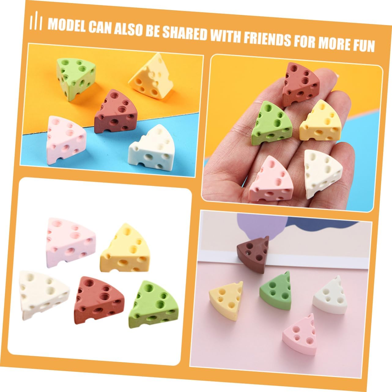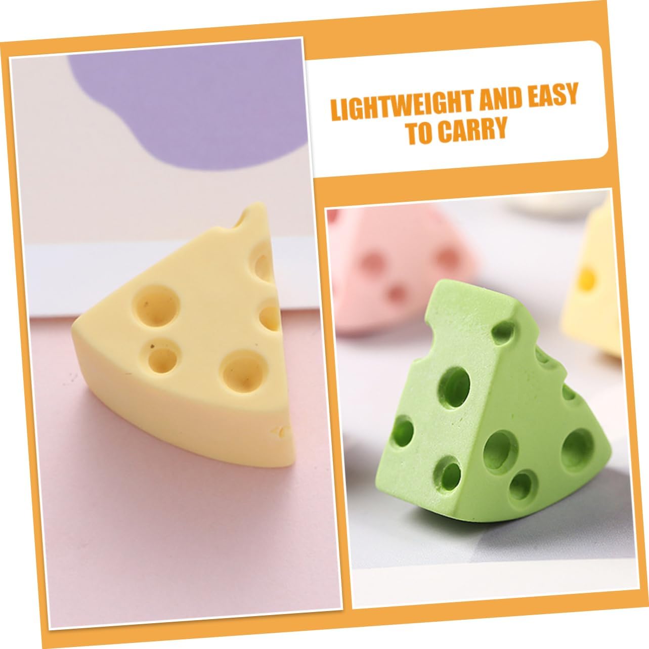 Formaggio decorativo: questo è un modello di simulazione di formaggio, molto realistico e bello, cibo finto per la decorazione della cucina Cibo finto da esposizione: molteplici usi, buon effetto decorativo, decorazione di giochi con il cibo, custodia e copricapo per cellulare, modello di simulazione di formaggio Accessori formaggio: anche se molto piccolo, il modello di formaggio è sufficiente e ha un eccellente effetto decorativo, mini formaggio artificiale Cibo finto: con pregevole fattura, perfetto per decorare la tua casa con una sensazione nuova e buona, falso per la decorazione della cucina Accessori cibo artificiale: possono essere usati come oggetto di scena o accessorio per l'arredamento della casa, offrendoti una buona esperienza di utilizzo, mini cibo finto