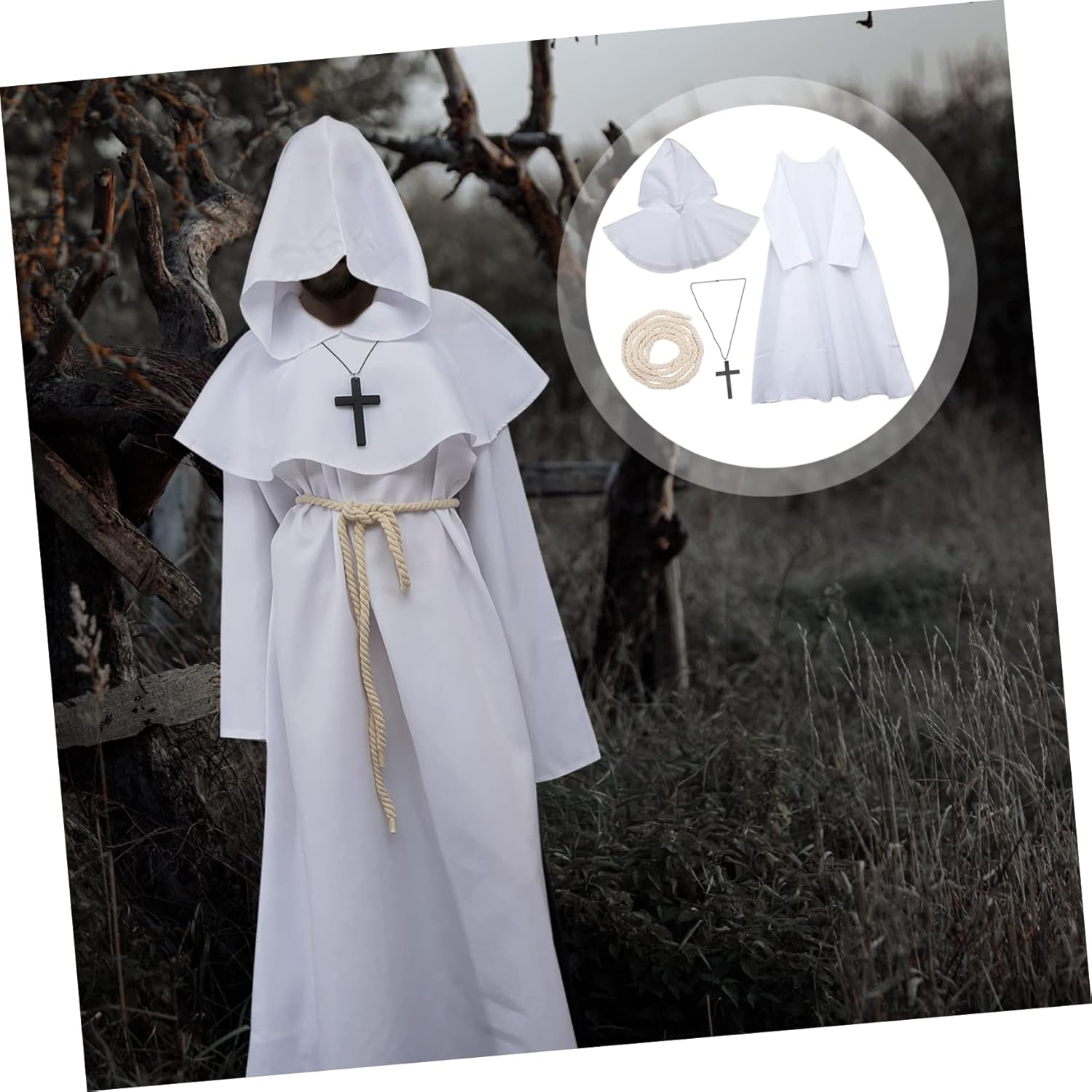 Veste da monaco con cappuccio - un accessorio per creare un'atmosfera più intensa da festival di Halloween, costume rinascimentale da halloween - molte applicazioni, adatto per cosplay, halloween, spettacoli, feste in maschera, ecc., costume rinascimentale da uomo di halloween - lavorazione eccellente, attentamente considerato in ogni dettaglio per renderlo retrò e affascinante, costume da monaco medievale da uomo - si abbina facilmente ai diversi costumi a tema monaco di halloween, ti offre un'esperienza comoda da usare, costume da sacerdote di Halloween per uomo - ti aiuta a essere nella festa e al centro della attenzione, adatto a donne e uomini, costume da prete