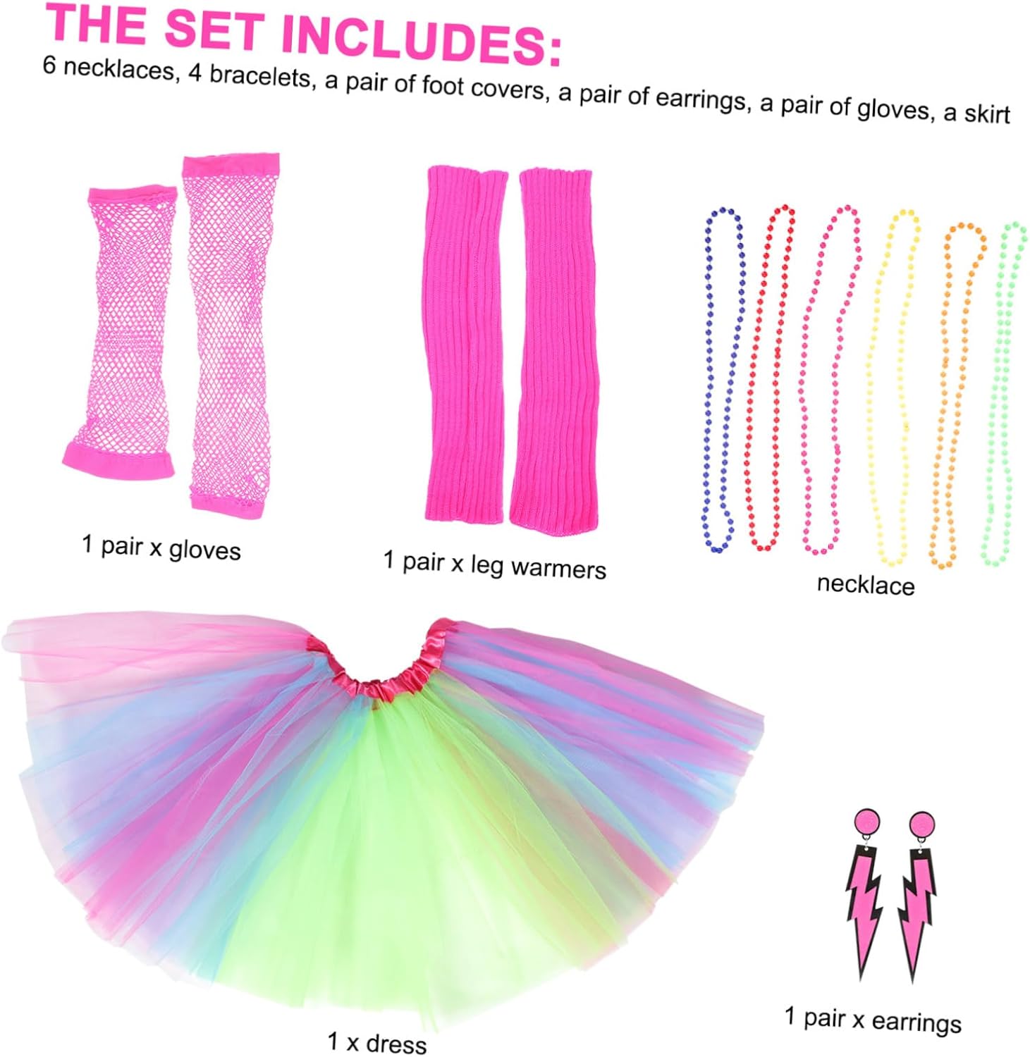 Il pacchetto include 1 paio di guanti, 1 paio di scaldamuscoli, 1 paio di orecchini, 6 collane, 1 vestito Caratteristiche - Dimensioni: 45,00X40,00X1,00cm/ 17,68X15,72X0,39 pollici da donna a tema discoteca. - Materiale: accessori per costumi da festa in poliestere. - Set di accessori perfetti per le donne per balli di fine anno, eventi e feste anni '80, decorazioni artistiche e accessori per costumi flapper e rocker. - Questi accessori per costumi sono leggeri, puoi indossarli alle feste, sono perfetti accessori per travestimenti anni '80 per le donne. - Aspetto grazioso ed elegante, pregevole fattura, può essere utilizzato anche come per gli amici come accessori da discoteca. - Costume da donna con assortiti - Ottimo set combinato adatto a donne e ragazze di varie età per mostrare la loro vitalità come accessorio. - Materiali in poliestere, molto comodi e flessibili, puoi usarli come accessori per un lungo periodo di tempo. Informazioni sulle merci accessori per costumi da discoteca Questi accessori per costumi sono realizzati in poliestere per un uso durevole e duraturo. Lo stile retrò degli accessori ti renderà unico alla tua festa. accessori per costumi da donna Flessibili e comodi da indossare, le dimensioni di questo kit di accessori per costumi adattano alla maggior delle persone, i vivaci ti rendono più attraente alla festa degli anni '80