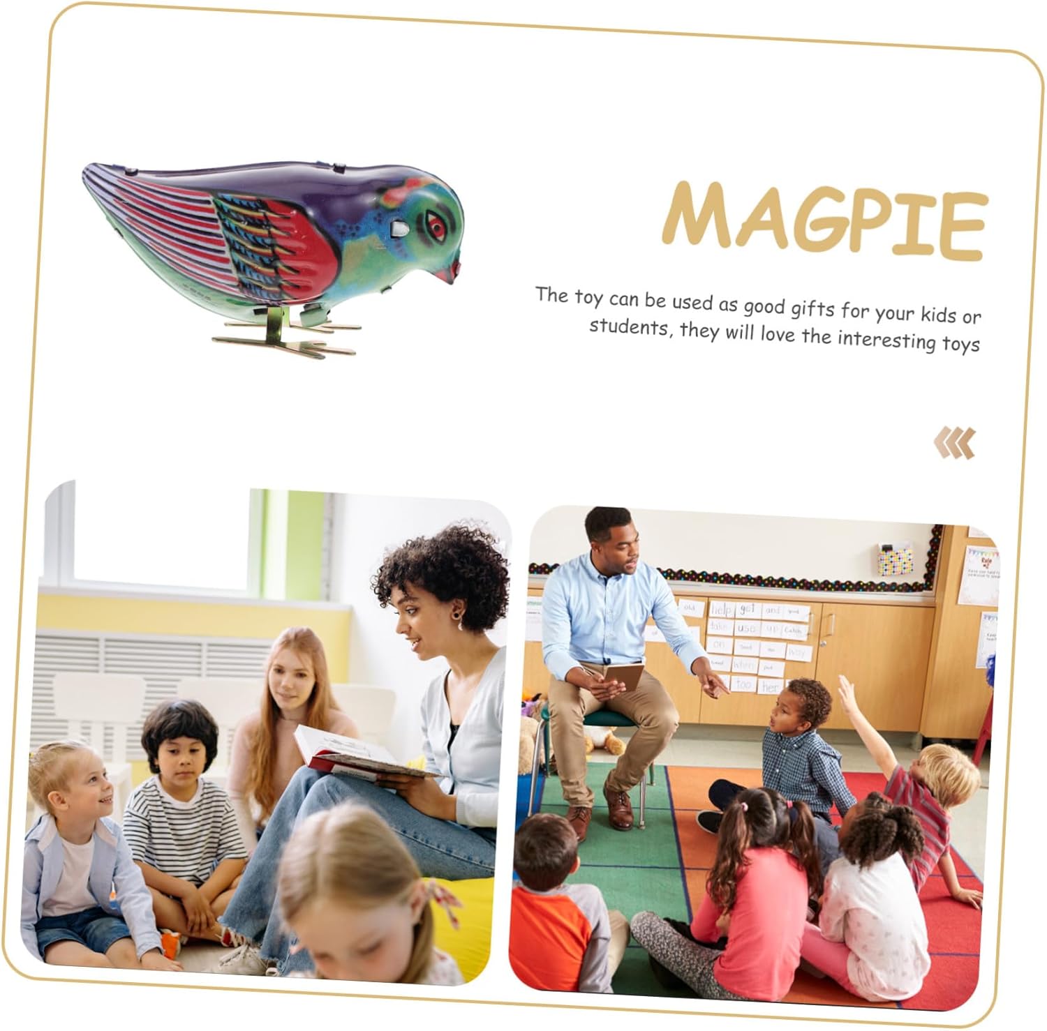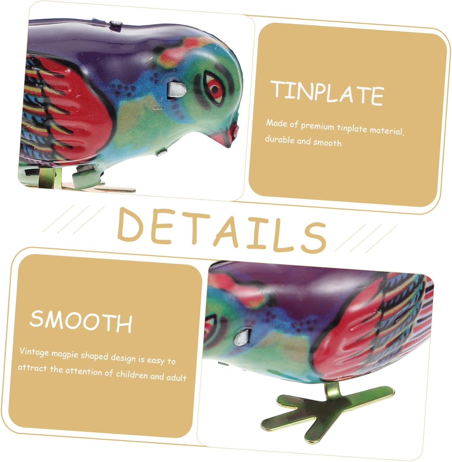 Piccoli giocattoli - i giocattoli a carica sono alimentati da una, possono essere riutilizzati e durano a lungo, Giocattoli a carica con bomboniere per i più piccoli - realizzati in banda stagnata di alta qualità, dimensioni eccellenti e perfetti per le mani piccole, giocattoli a orologeria per il regalo di Natale dei bambini piccoli - ideali come regalo di compleanno, pignatta, premio di classe, regalo di scambio scolastico., giocattoli vintage in lamiera stagnata Giocattoli di latta - design retrò a forma di gazza, adatti per il tuo Per attirare la tua attenzione, giocattoli per bambini Divertenti giocattoli a carica - realizzati in banda stagnata, di pregevole fattura e delicati giocattoli a carica in metallo