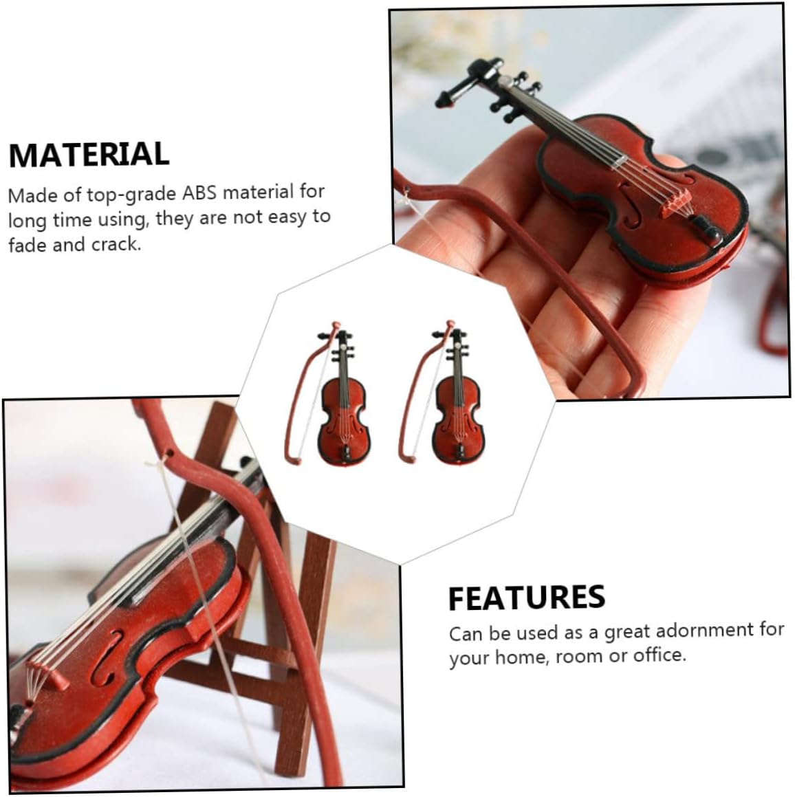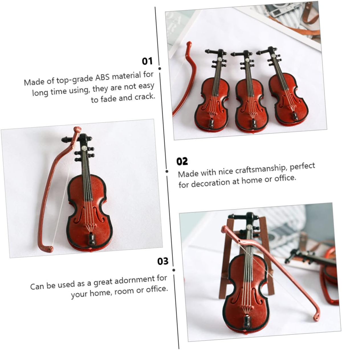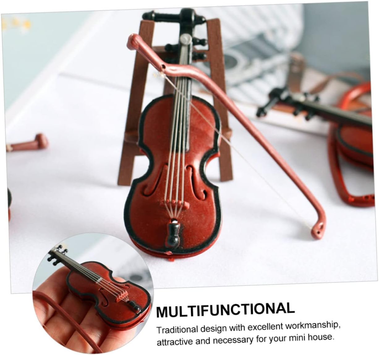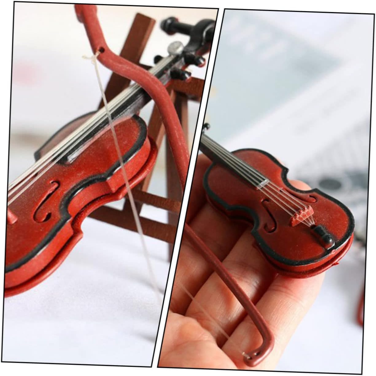 Modello da esposizione di violino - puoi usare mini violini per decorare un albero di Natale, modello di violino unico e in miniatura Violino in plastica - progettato con legno simulato, quindi ha un aspetto naturale, ornamento di violino in miniatura Statua di violino retrò - effetto naturale realistico, stile semplice e moderno, ti porterà un bellissimo effetto visivo, mini modelli di strumenti musicali Strumento per violoncello in miniatura - pregevole fattura, superficie liscia, non graffierà il tuo, modello di strumento musicale Decorazione natalizia del violino - violino dal design delicato, sembrano giocattoli musicali per la casa alla moda e chic, molto eleganti